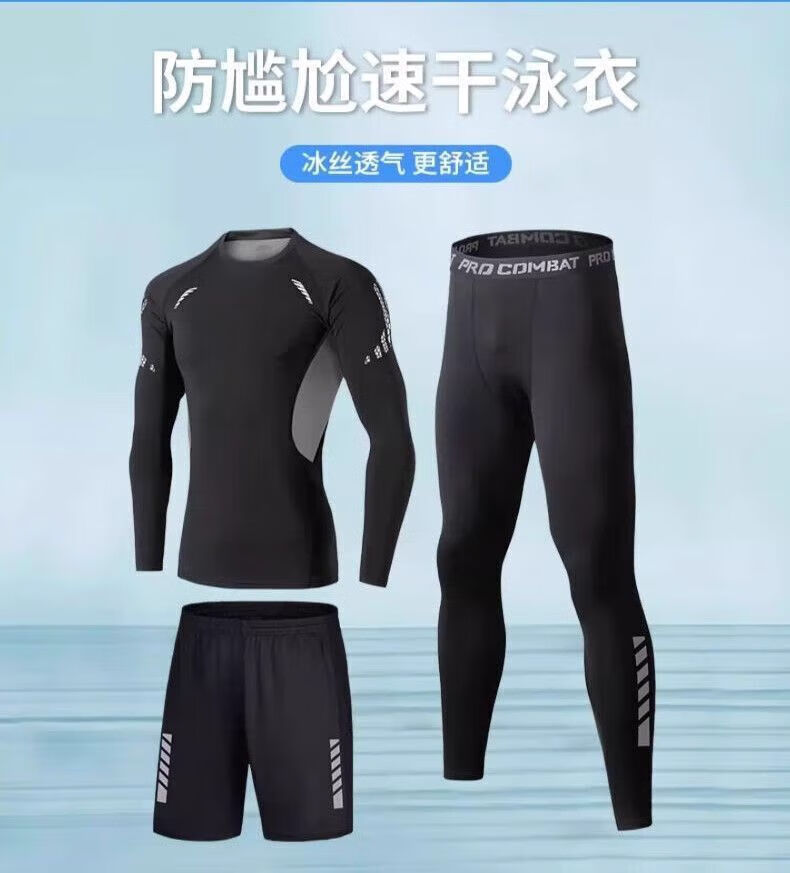 Купальник мужской быстросохнущий костюм для серфинга взрослый плавательный костюм с длинными рукавами молодежный гидрокостюм медуза плавательный шелковый серый с короткими рукавами + J J09 научно-фантастический длинный рукав + черные брюки J03 высокой эластичности 5XL 190-210Jin Jin равен 0,5 кг