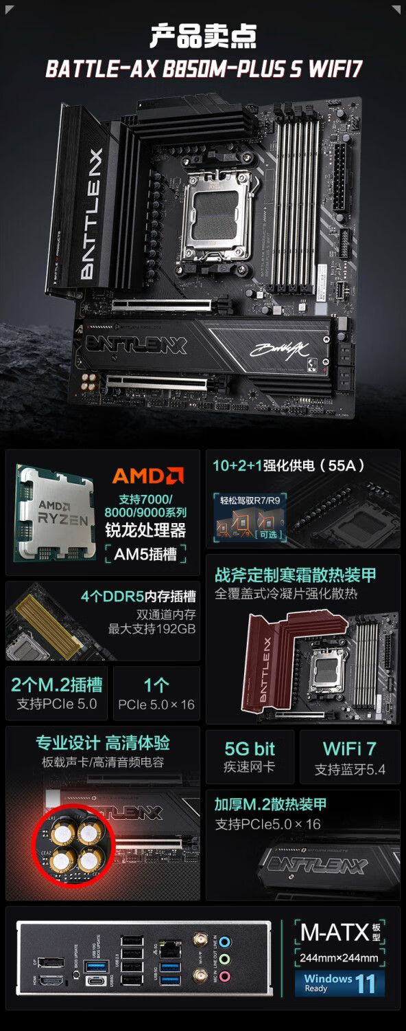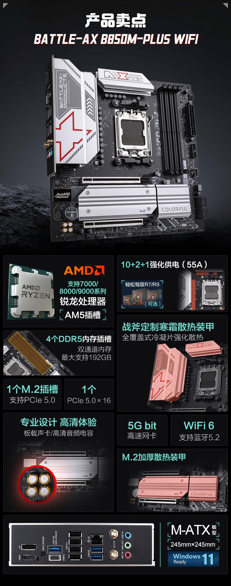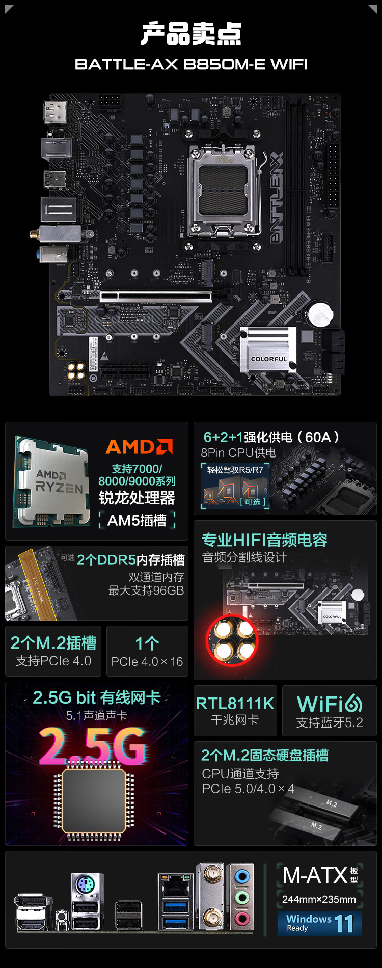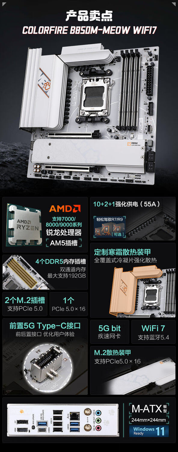 Colorful B850M Super Black Blade Tomahawk/X870E motherboard DDR5 memory WIFI supports AMD Ryzen CPU 9800X3D/9600X/9950X3D/9700X/7800X3D Super Black Blade B850M-PLUS S