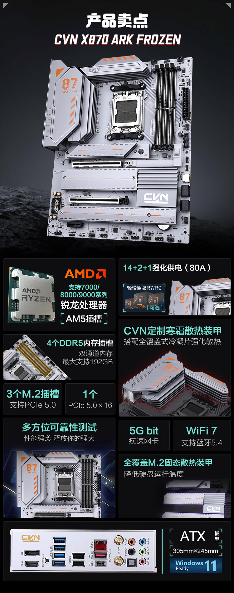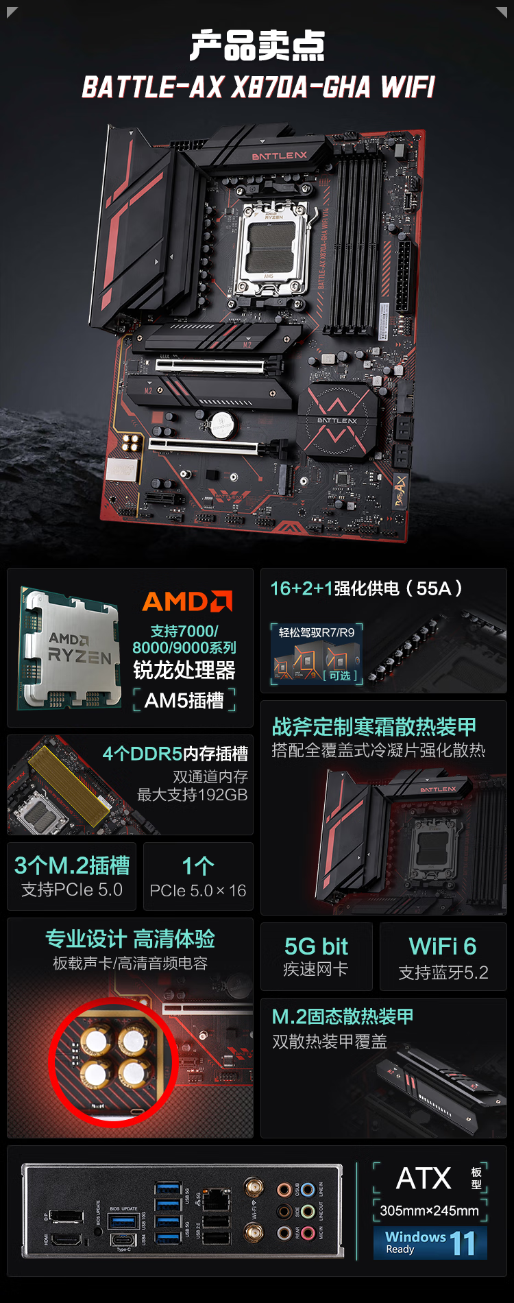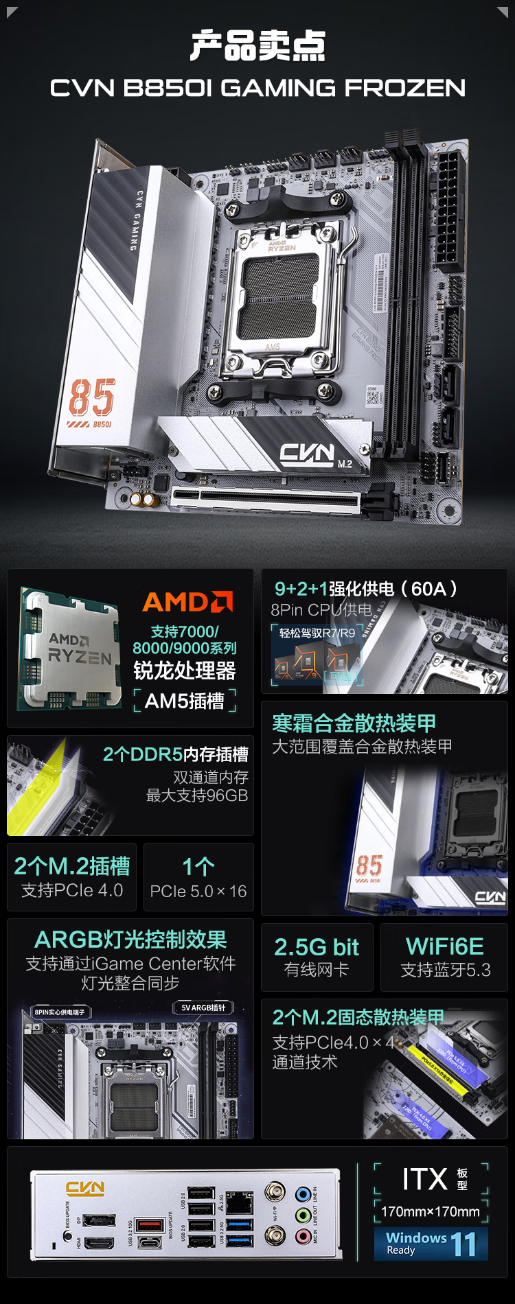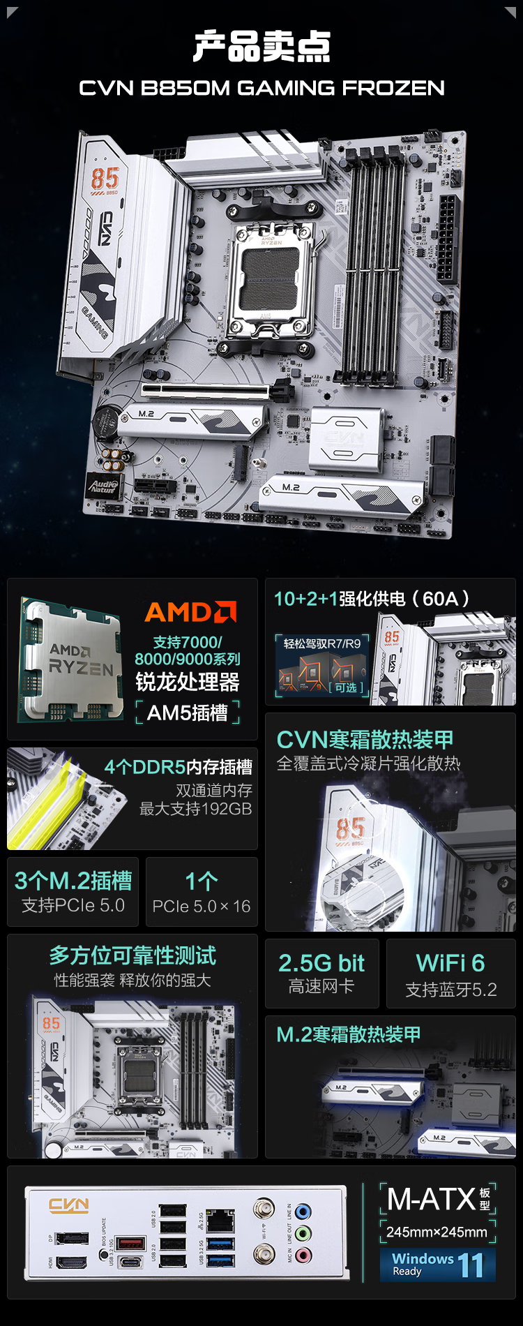 Colorful B850M Super Black Blade Tomahawk/X870E motherboard DDR5 memory WIFI supports AMD Ryzen CPU 9800X3D/9600X/9950X3D/9700X/7800X3D Super Black Blade B850M-PLUS S