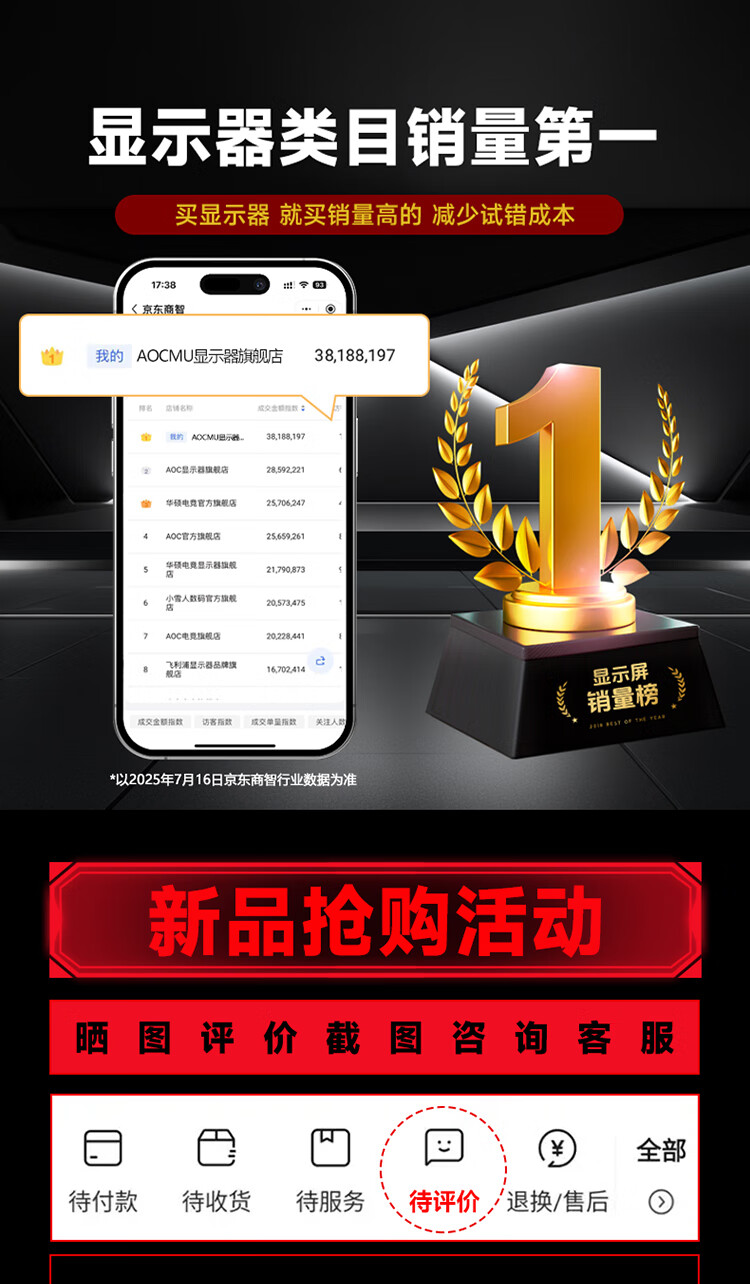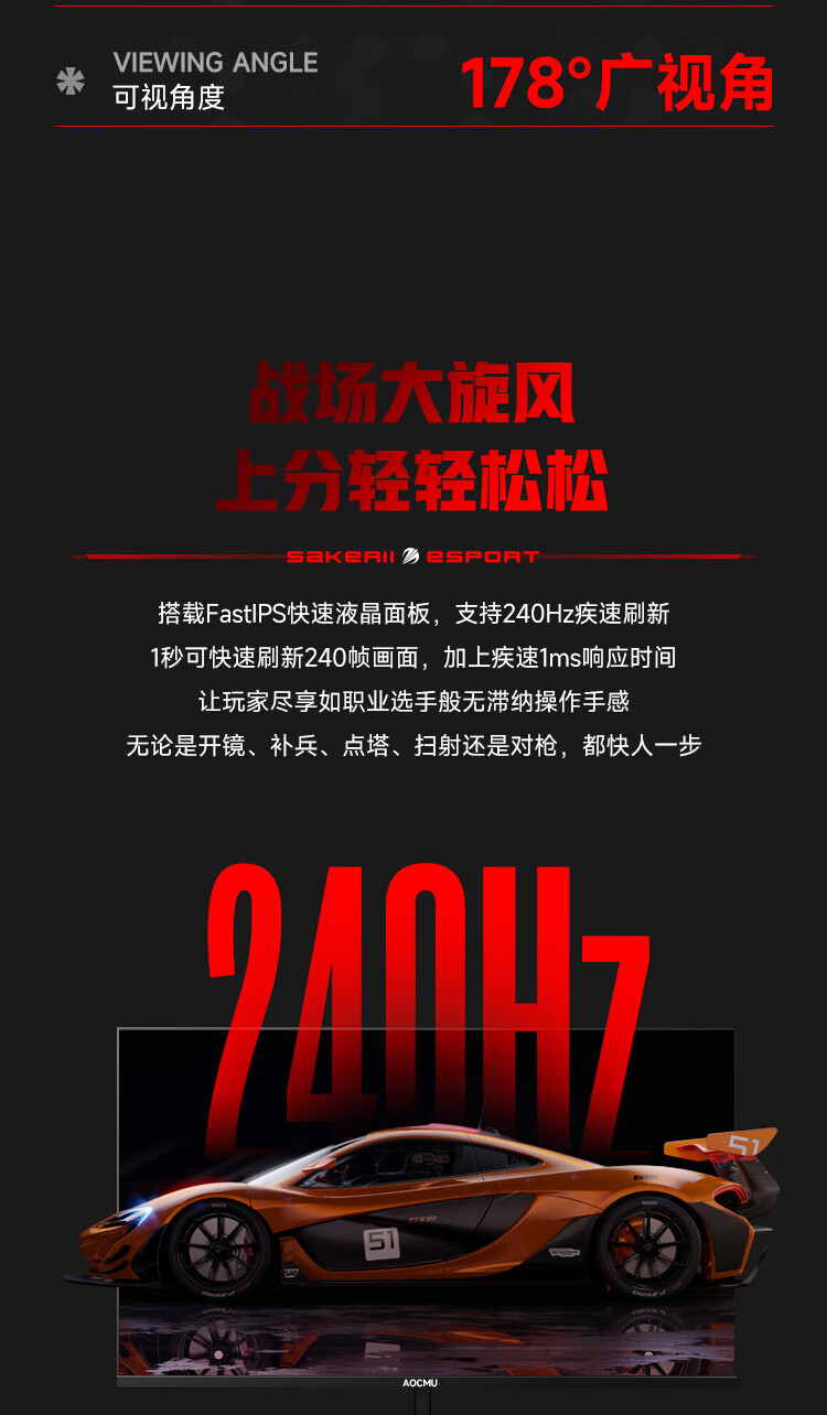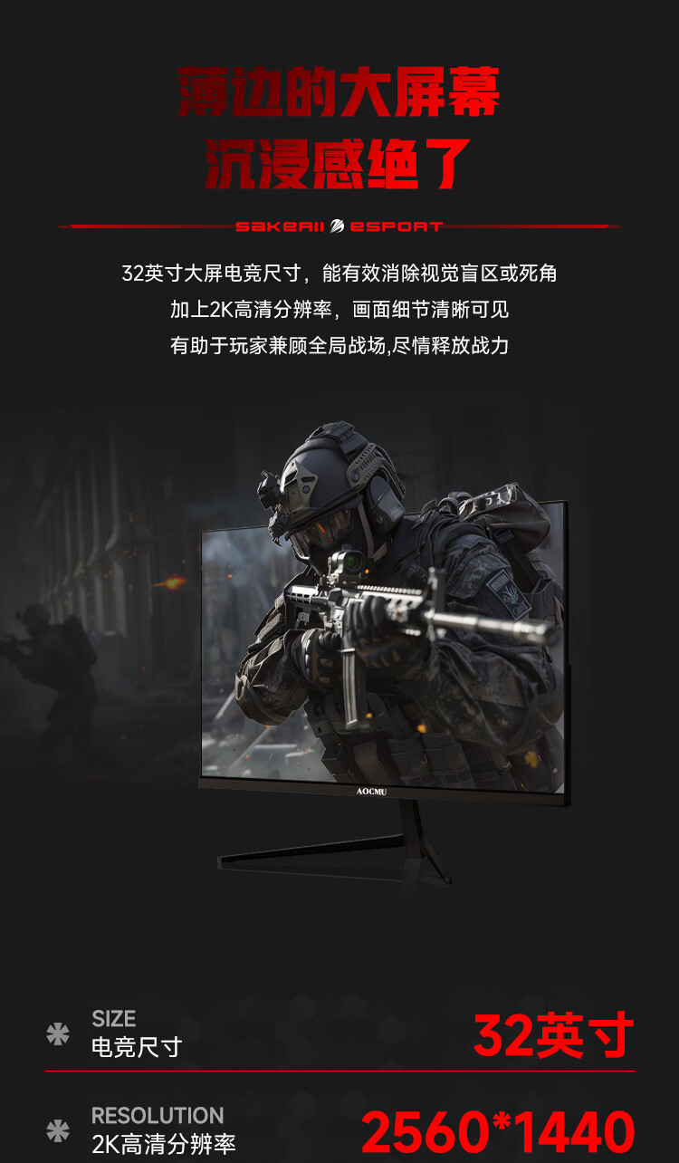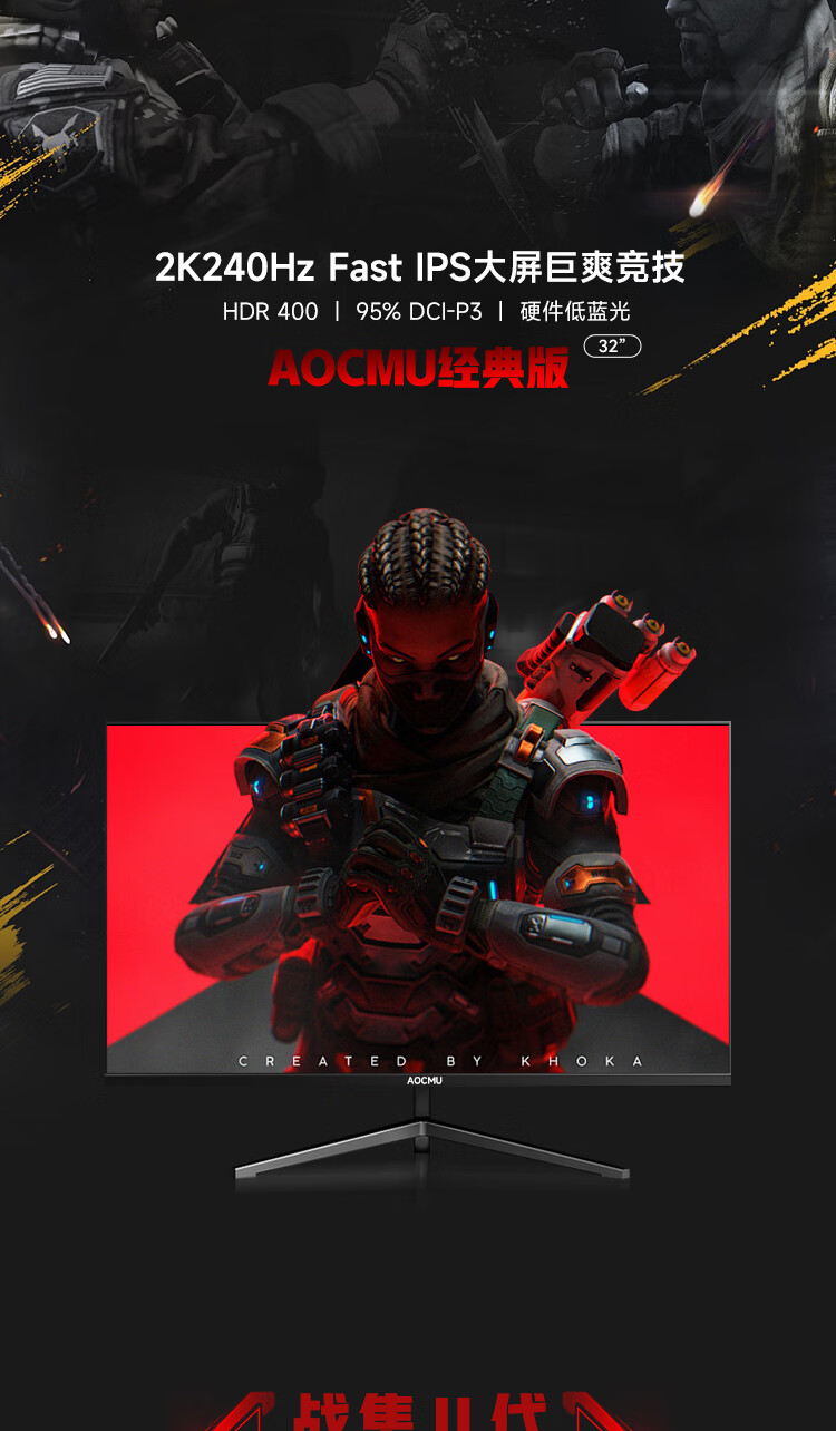 AOCMU32英寸显示器2K240'HZ电脑显示屏高清4K超薄办公设计电竞游戏扩展副屏大屏新款 32英寸4K160HZ直黑 【巅峰视觉PRO】