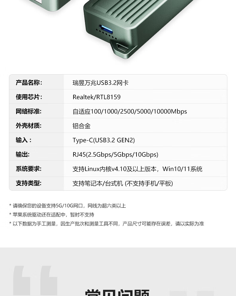 DIEWU10G network card USB3.2 network cable transfer interface 10000Mbps high-speed typec Gigabit rj45 wired converter 2.5Gwin10 11 laptop desktop computer Type-C to network port 10G 10G TXA402
