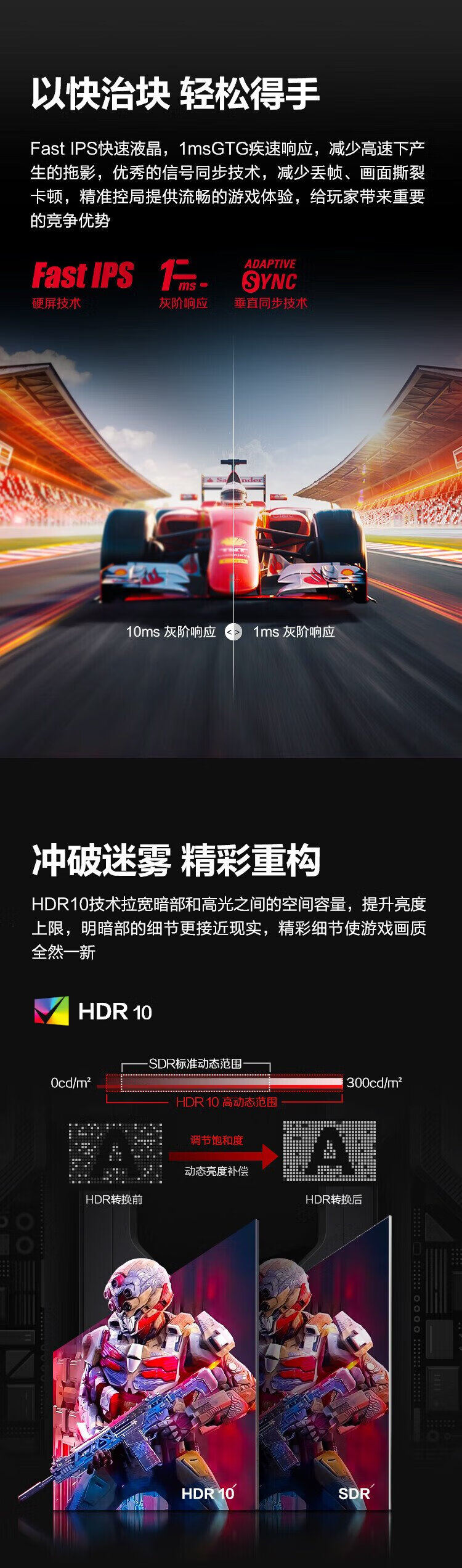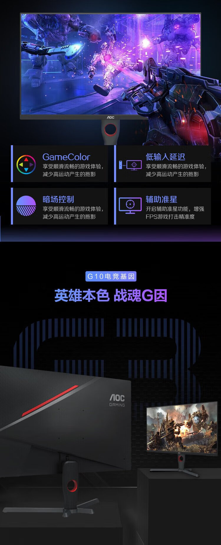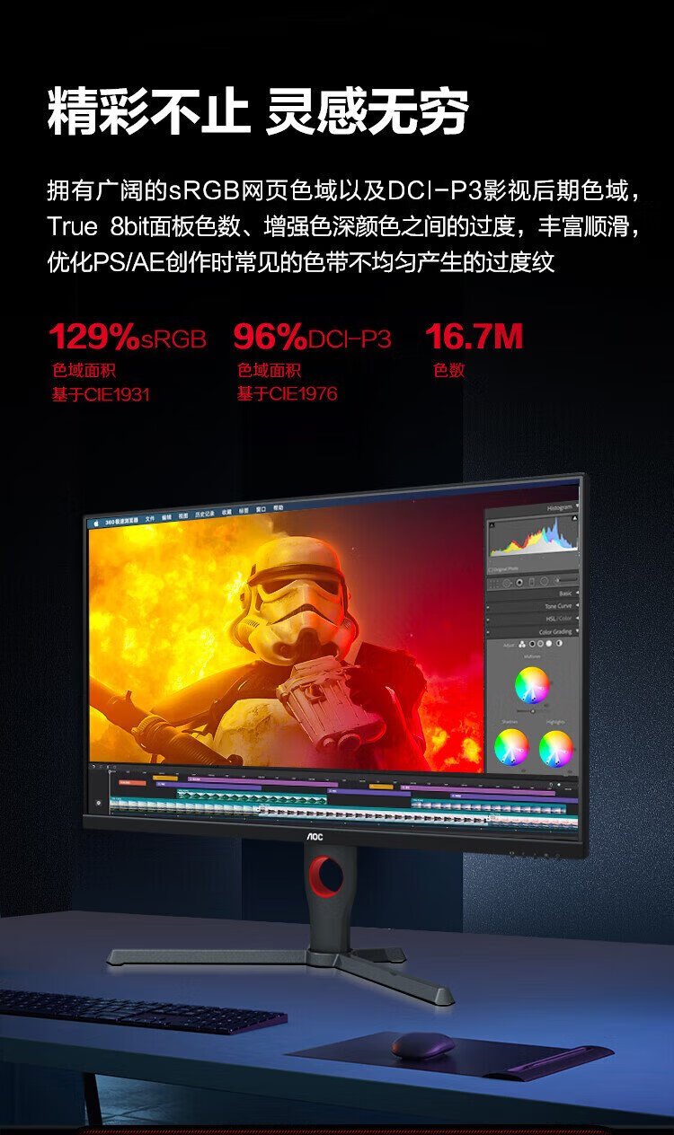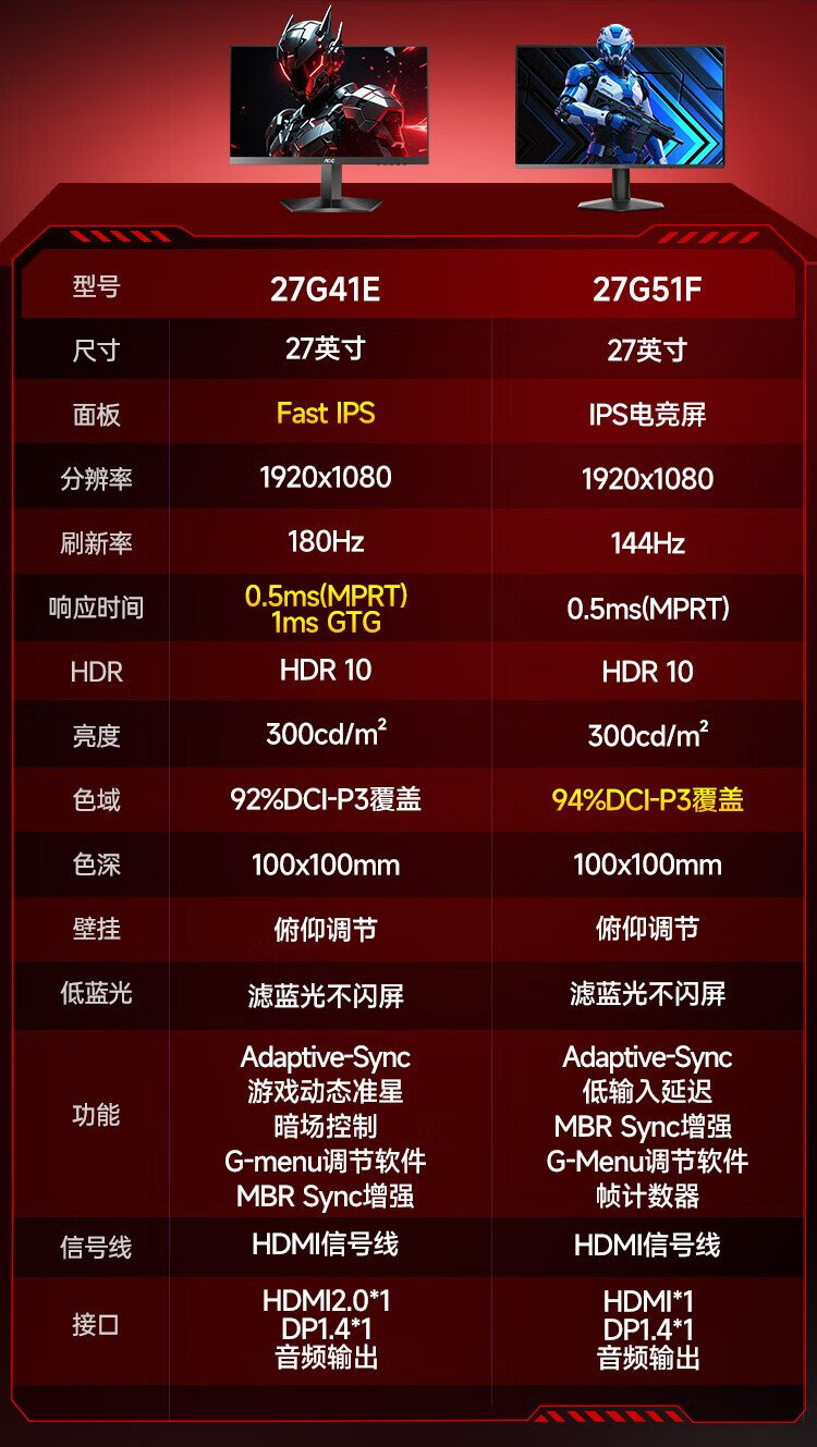 AOC 27英寸240HZ超频260电竞显示器 FastIPS快速液晶0.5MS响应 游戏电脑屏幕HDR10 【升级】260Hz硬件低蓝光 27G51Z