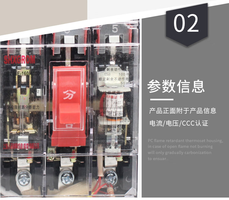 SHXGROM plastic case leakage circuit breaker three-phase four-wire leakage protector 160A250A400A630A transparent case 4p 200A