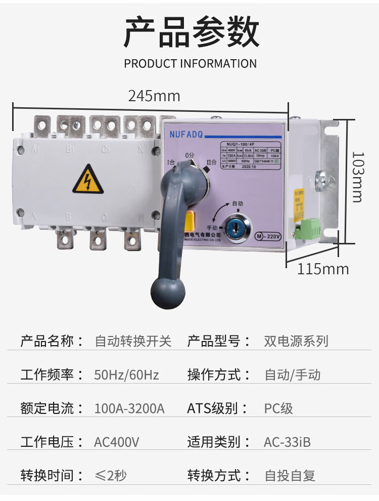 Other dual power automatic transfer switch NH40-4P16A100A 4SZPC grade isolation switch Q1 4p 160A