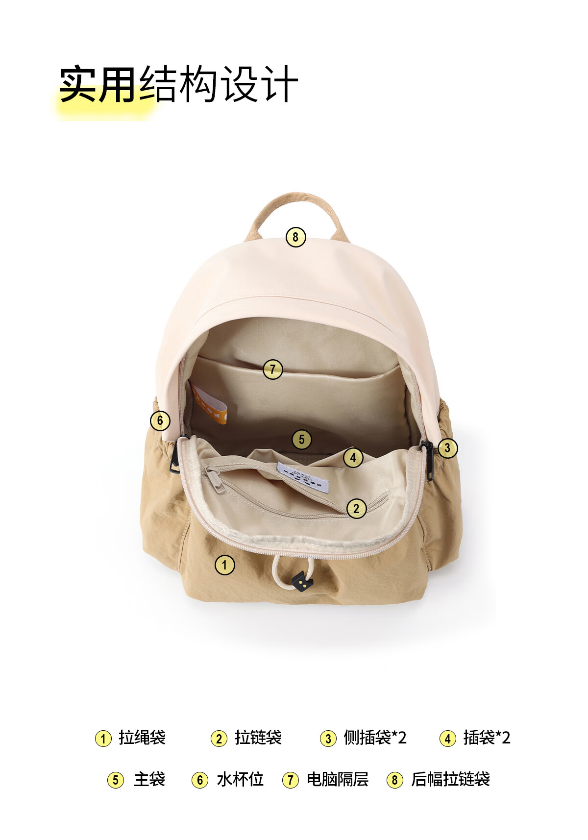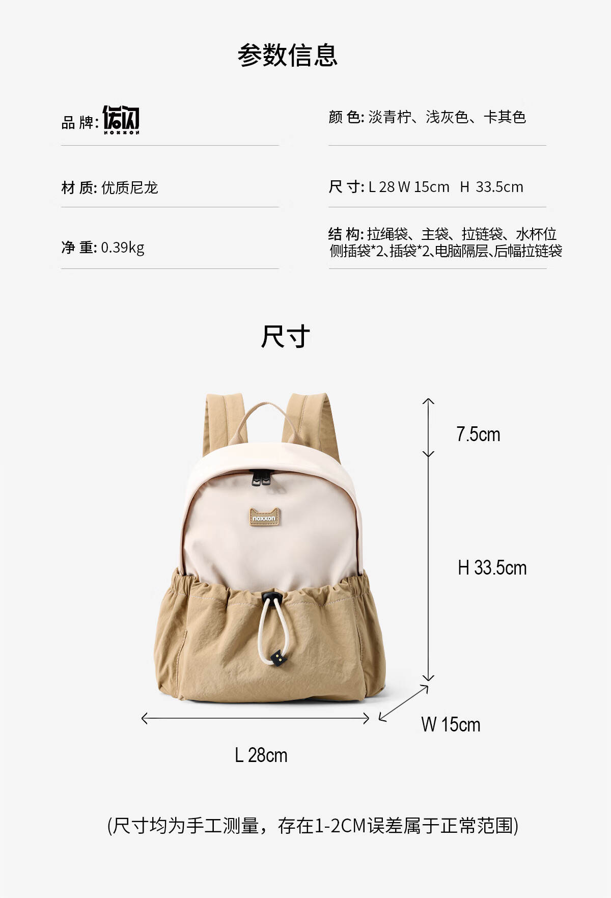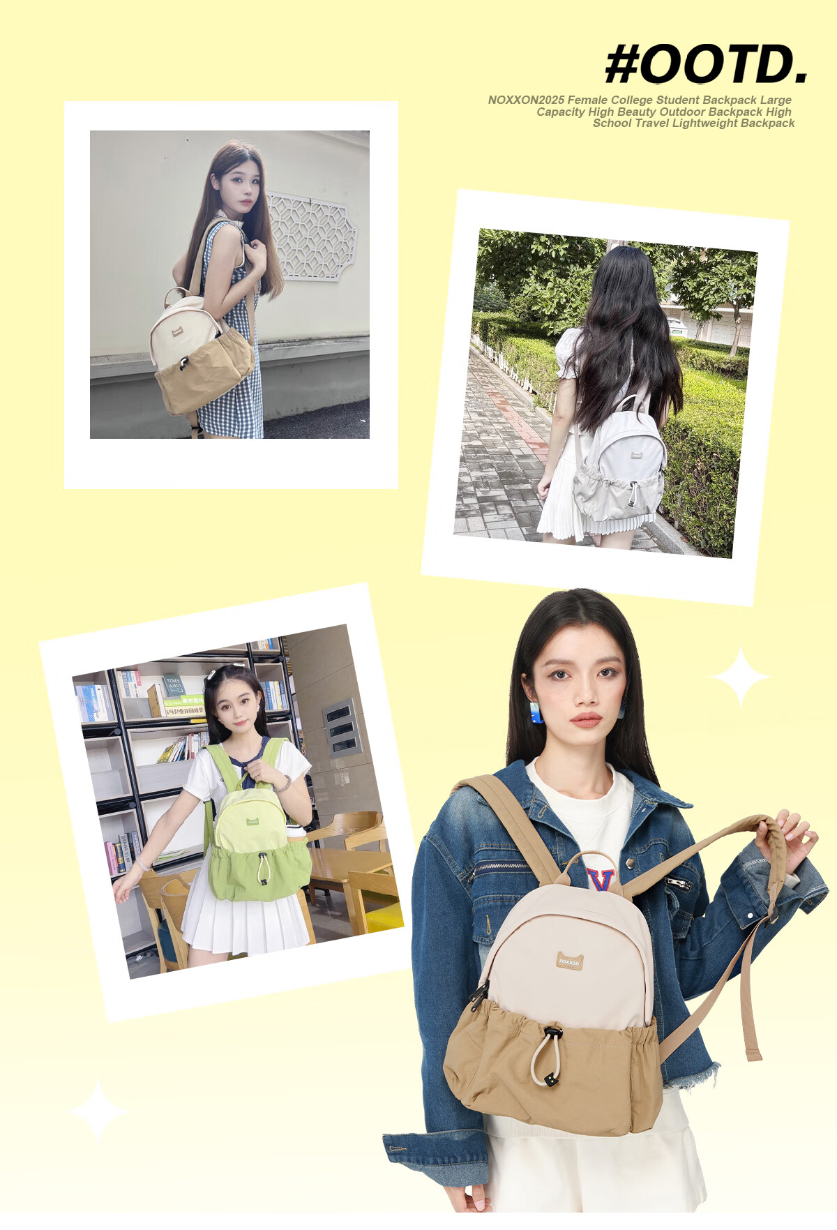 NOXXON flash new backpack female fashion college student bag high school student lightweight backpack female nylon backpack light gray