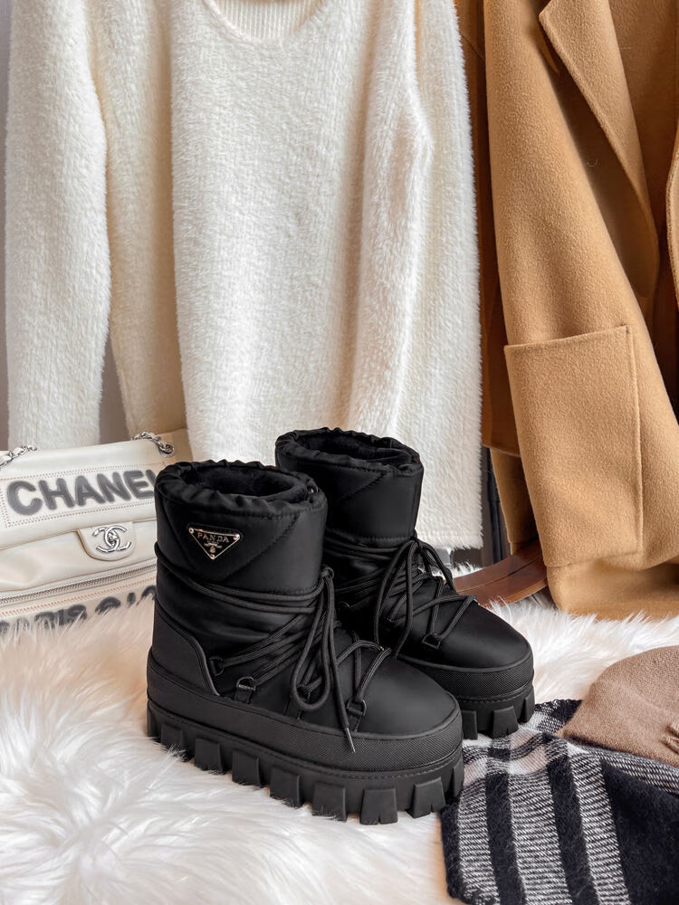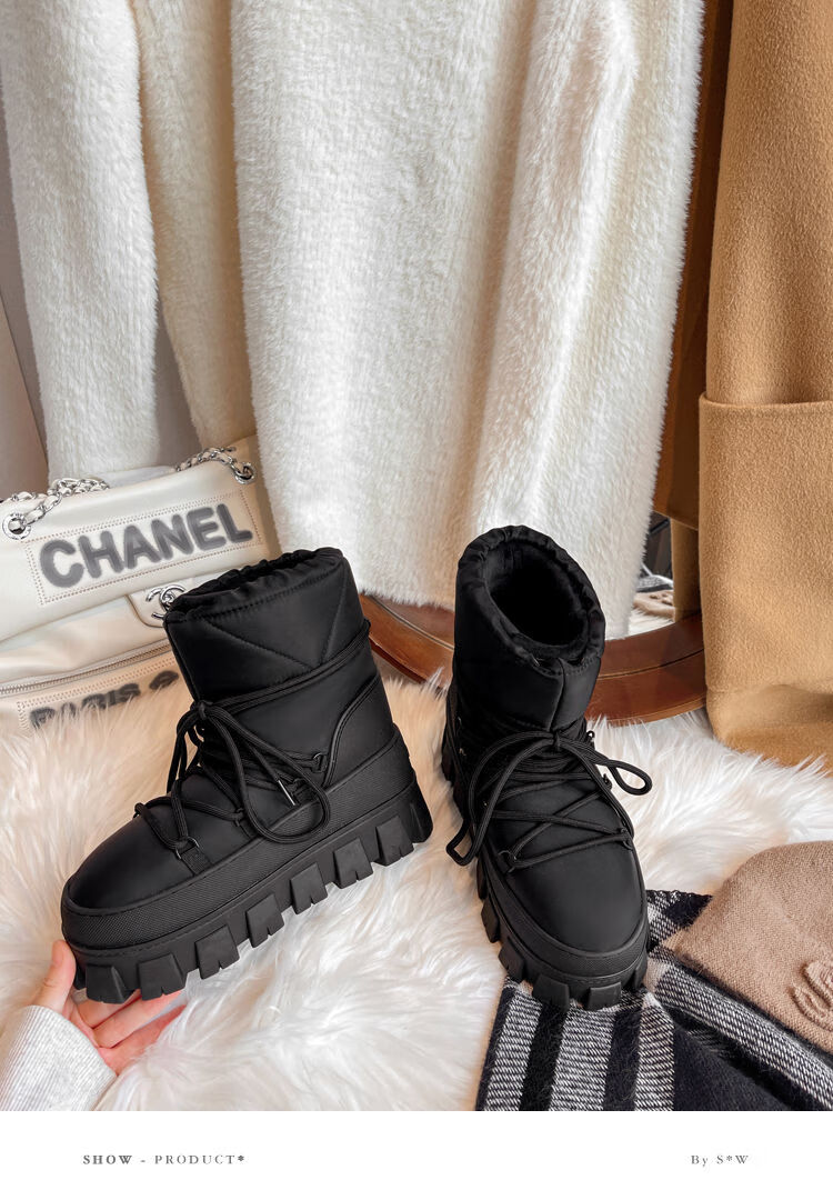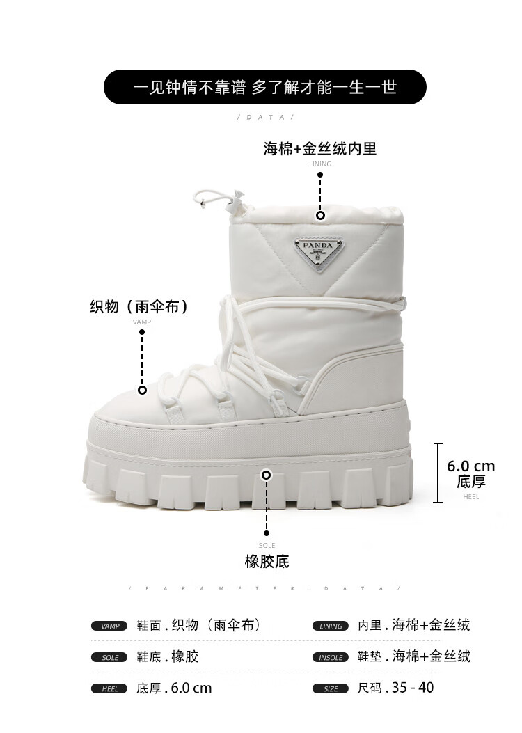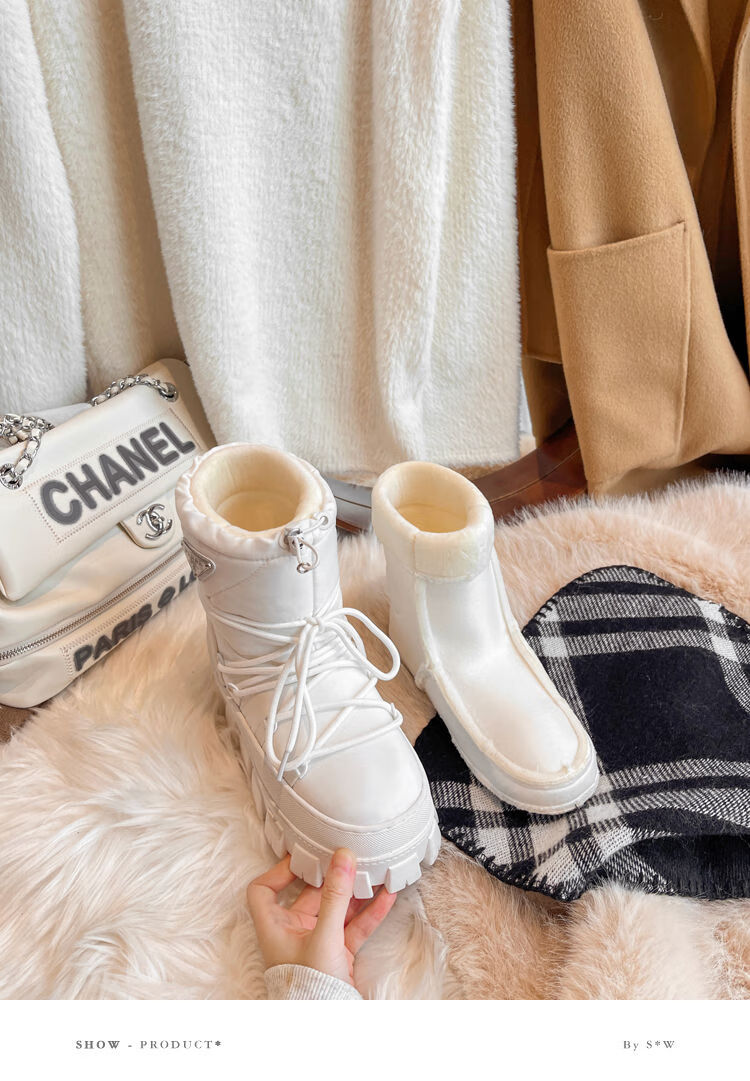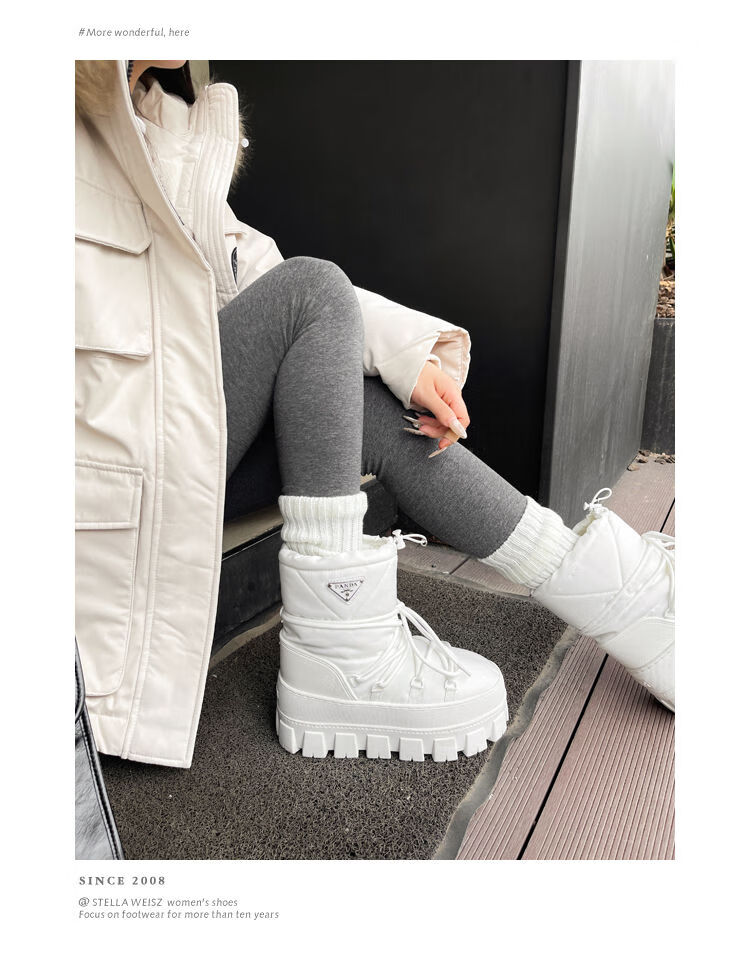 Dreieckiges Logo, dicke Sohle, warme Damen-Schneestiefel, 2025 Winter, neue kurze Röhre, rutschfeste Skischuhe, mit Wolle gefütterte Baumwollschuhe, Milchweiß (High-End-Version), 35