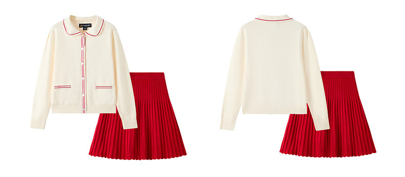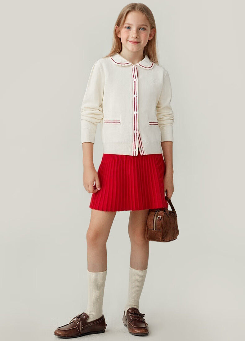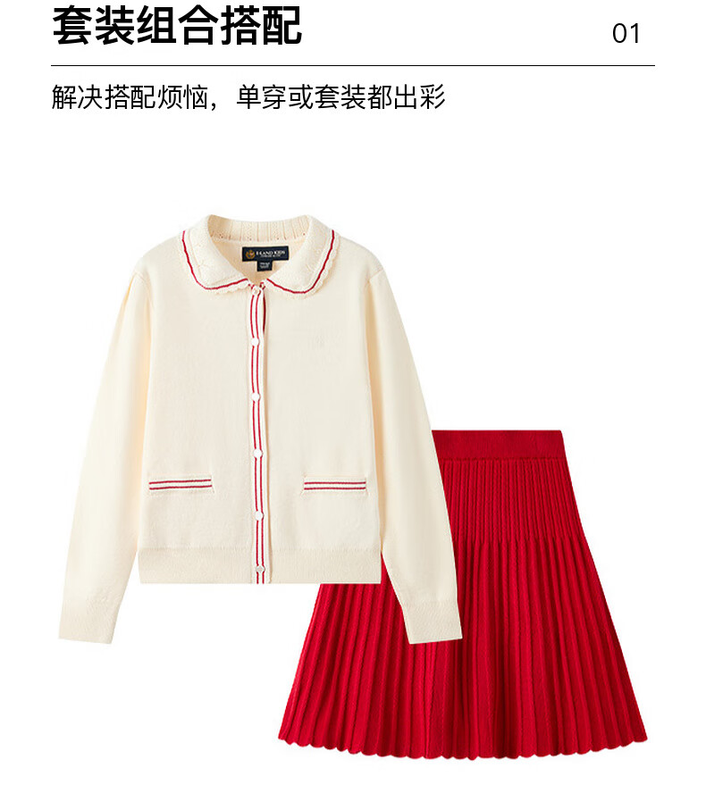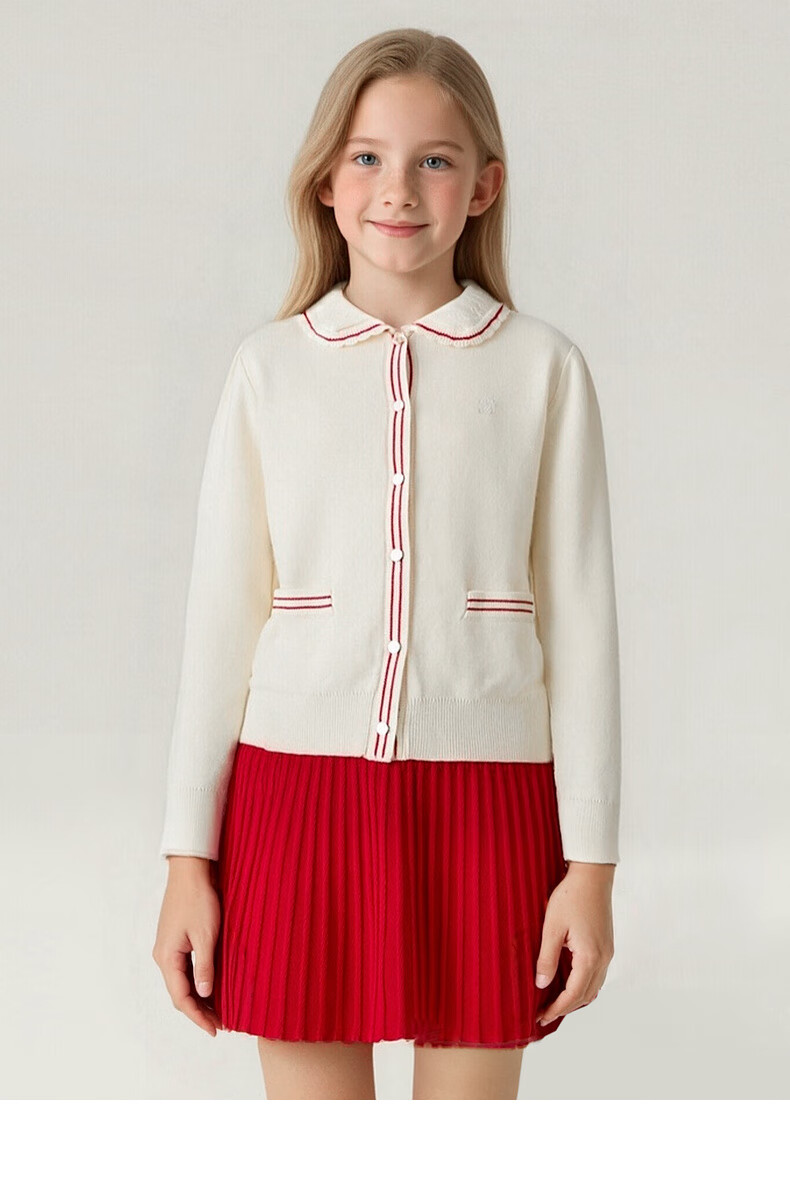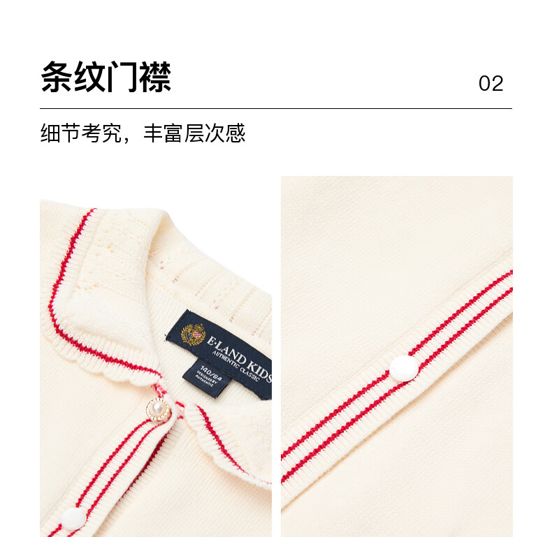 E·LAND KIDS【100%棉】童装女童套装25秋冬新品针织开衫半身裙 Ivory象牙白/39 110