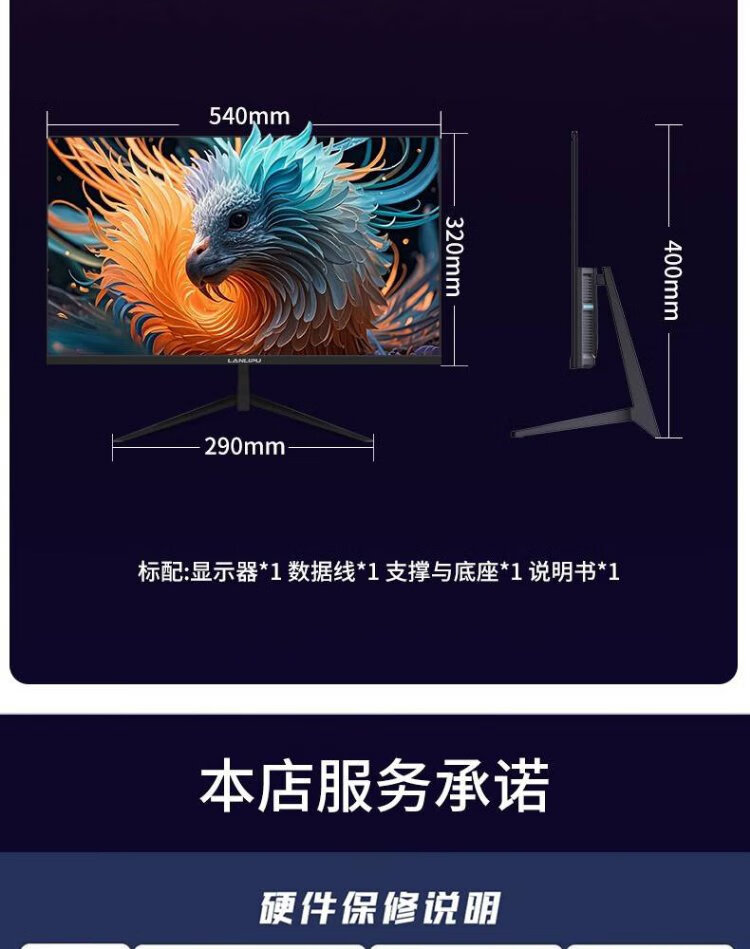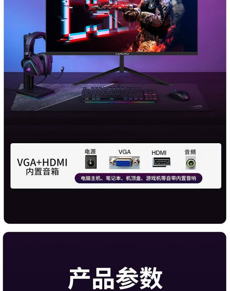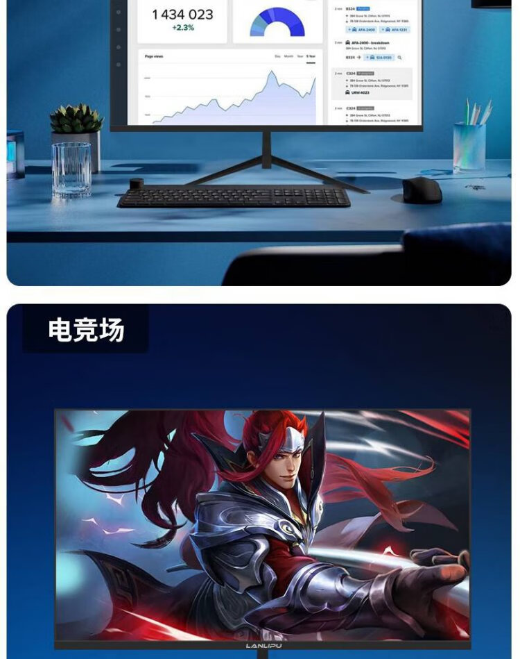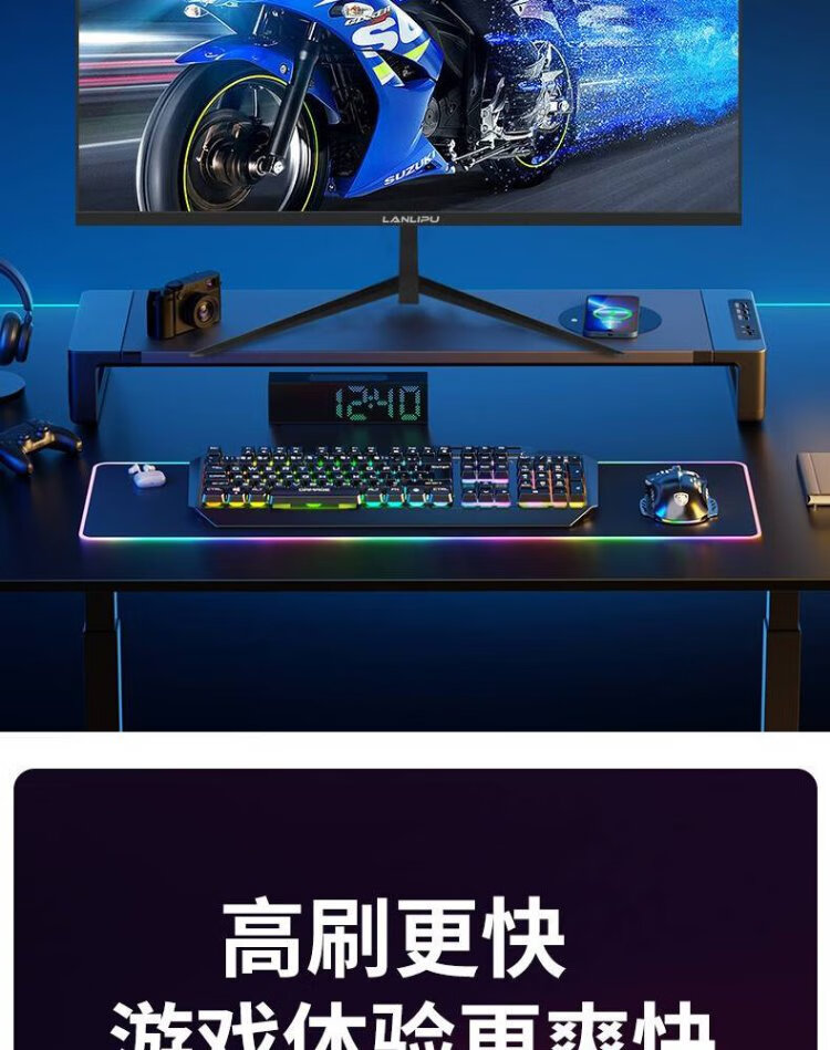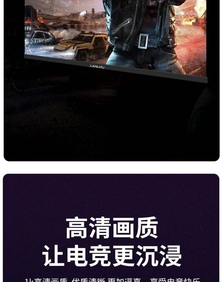Monitor de computadora LANLIPU Pantalla sin parpadeos para juegos de deportes electrónicos de 24 pulgadas Respuesta de 180 hz 1 m Alta gama de colores Marco estrecho IPS Pantalla 4K para deportes electrónicos Little King Kong HD Interfaz dual de marco estrecho de 24 pulgadas 1K75 Hz