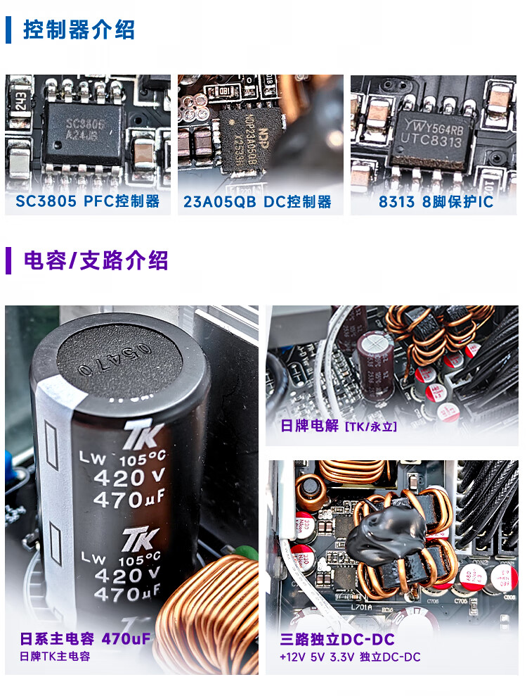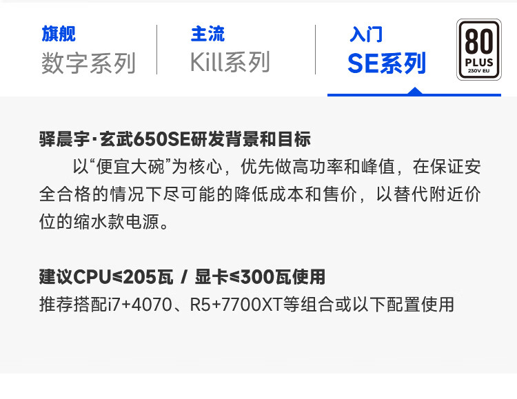 Yichenyu Xuanwu 650SE DC-DC-Super-Core-Lastnetzteil, weiße Marke, 650 W Spitze, 1000 W, Chenyu angepasste Xuanwu 650SE optimierte Version – weiß mit Netzkabel