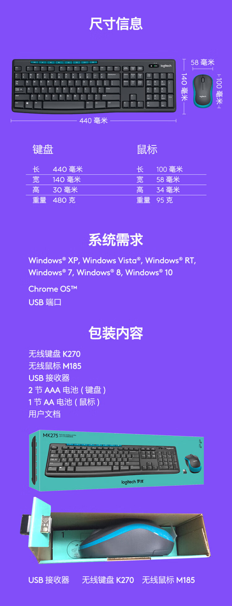 Logitech MK275/MK276 Wireless Keyboard Mouse Set Keyboard Mouse Laptop Desktop Computer Home Business Office Typing Special MK275 Keyboard Mouse Set Z