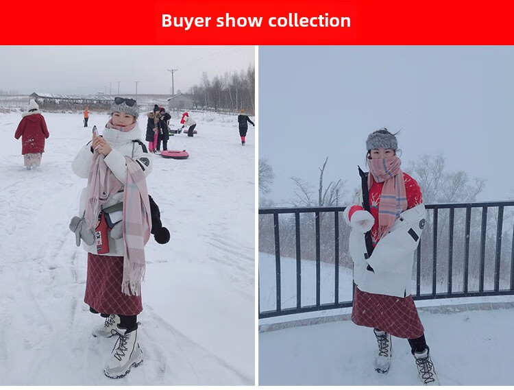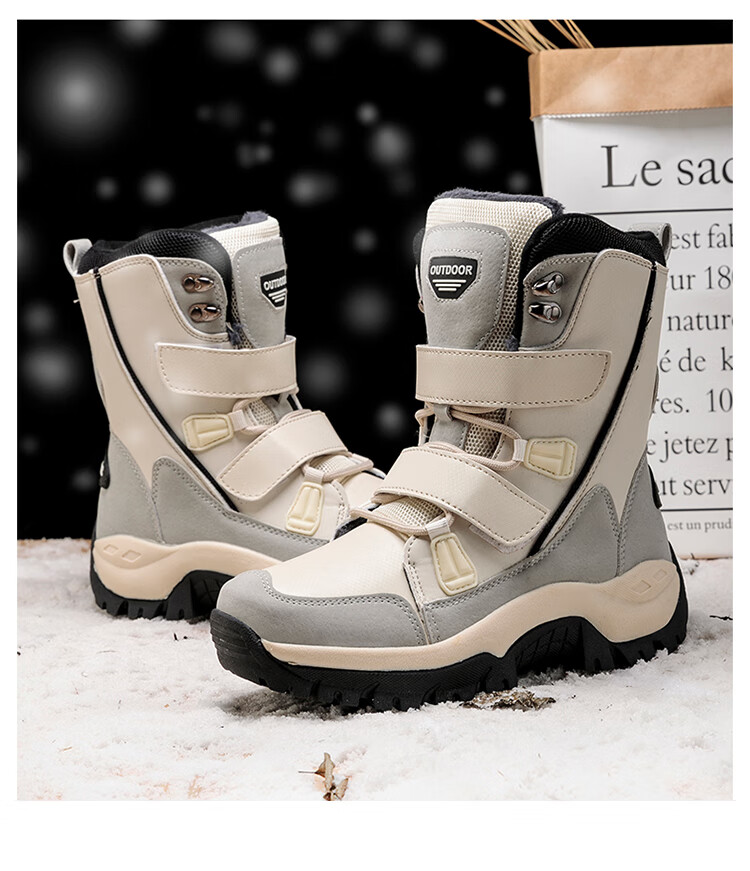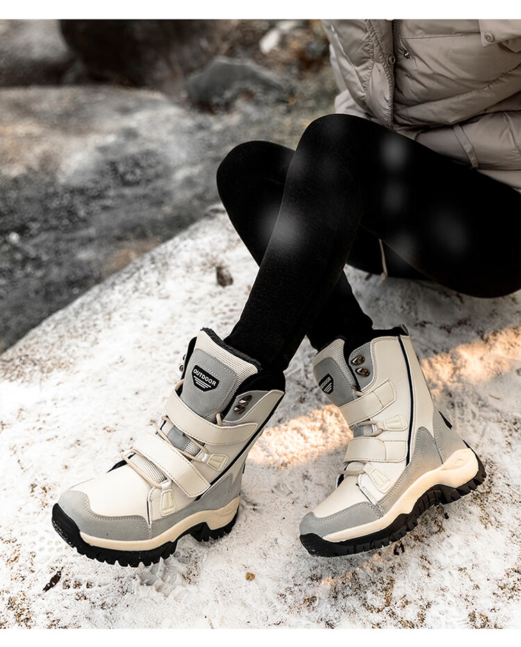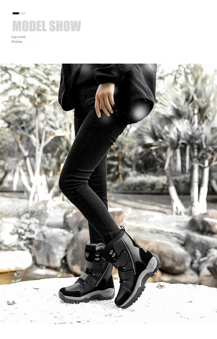 足力健大师冬季加绒加厚保暖棉鞋女防滑防水户外东北雪地靴女中筒厚底滑雪鞋 219枣红(女款) 40