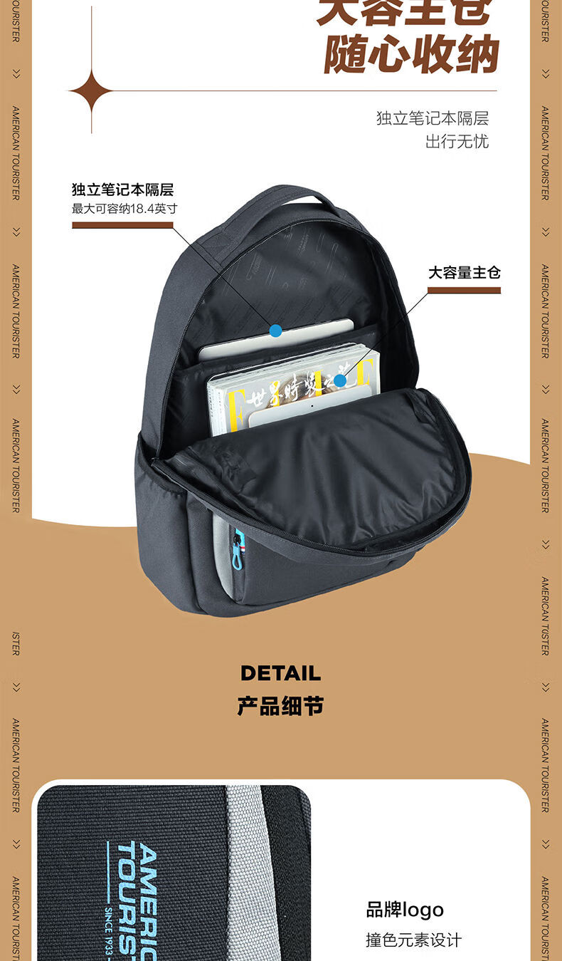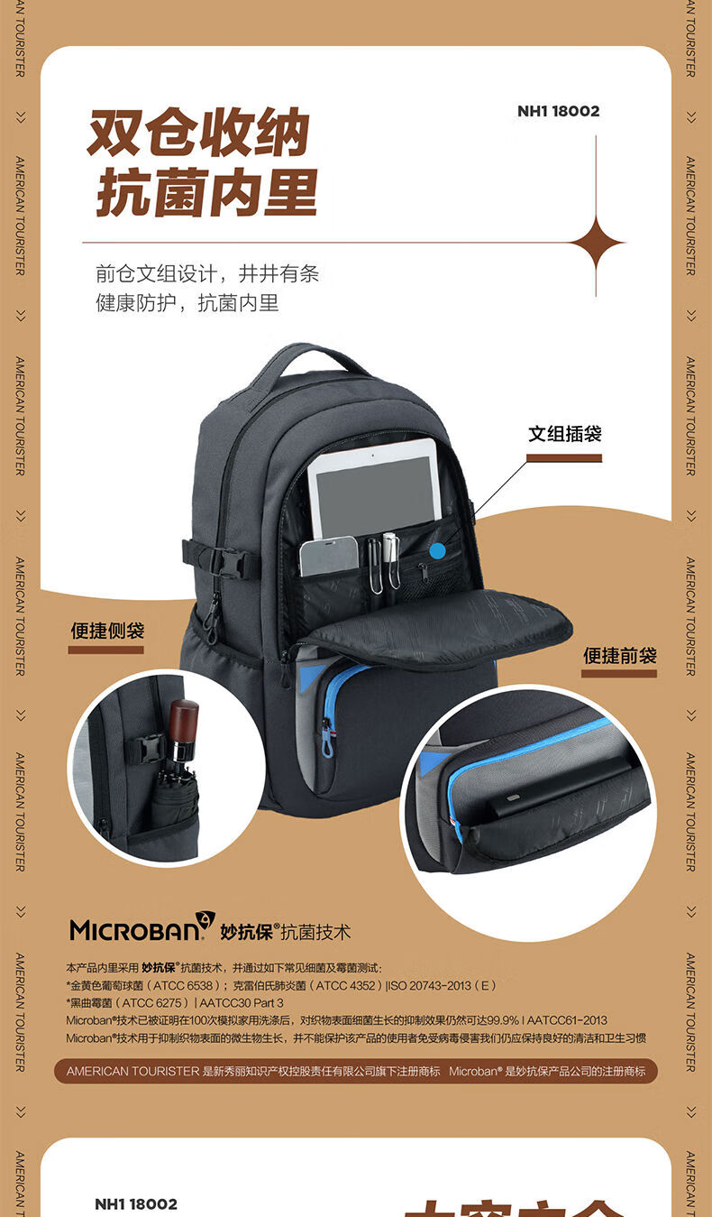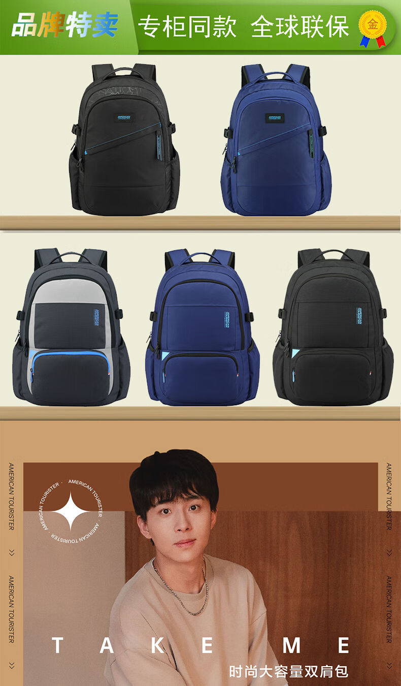 AT Rucksack NH1 Gymnasiast Schultasche Reiserucksack Outdoor Mode Freizeittasche Männer und Frauen Koreanische Version Dunkelblau NH1*41002