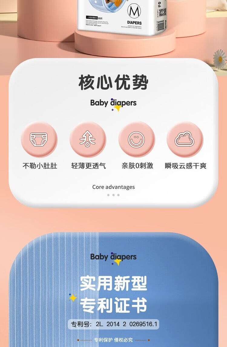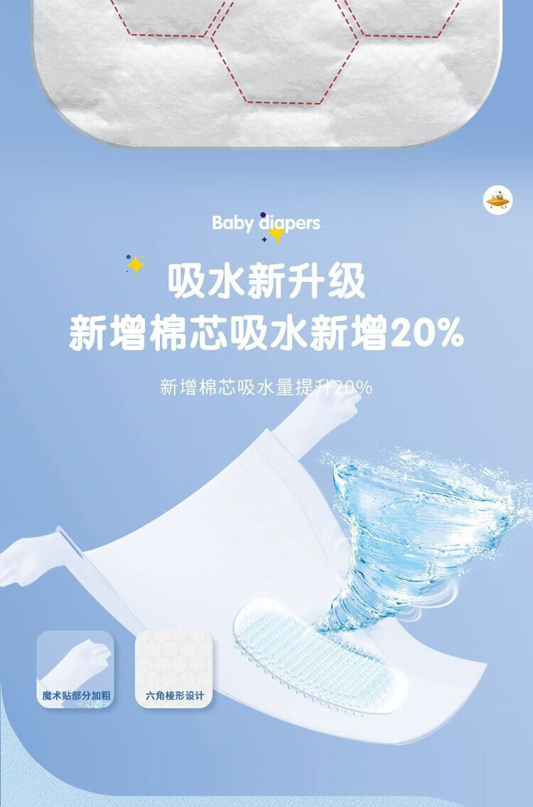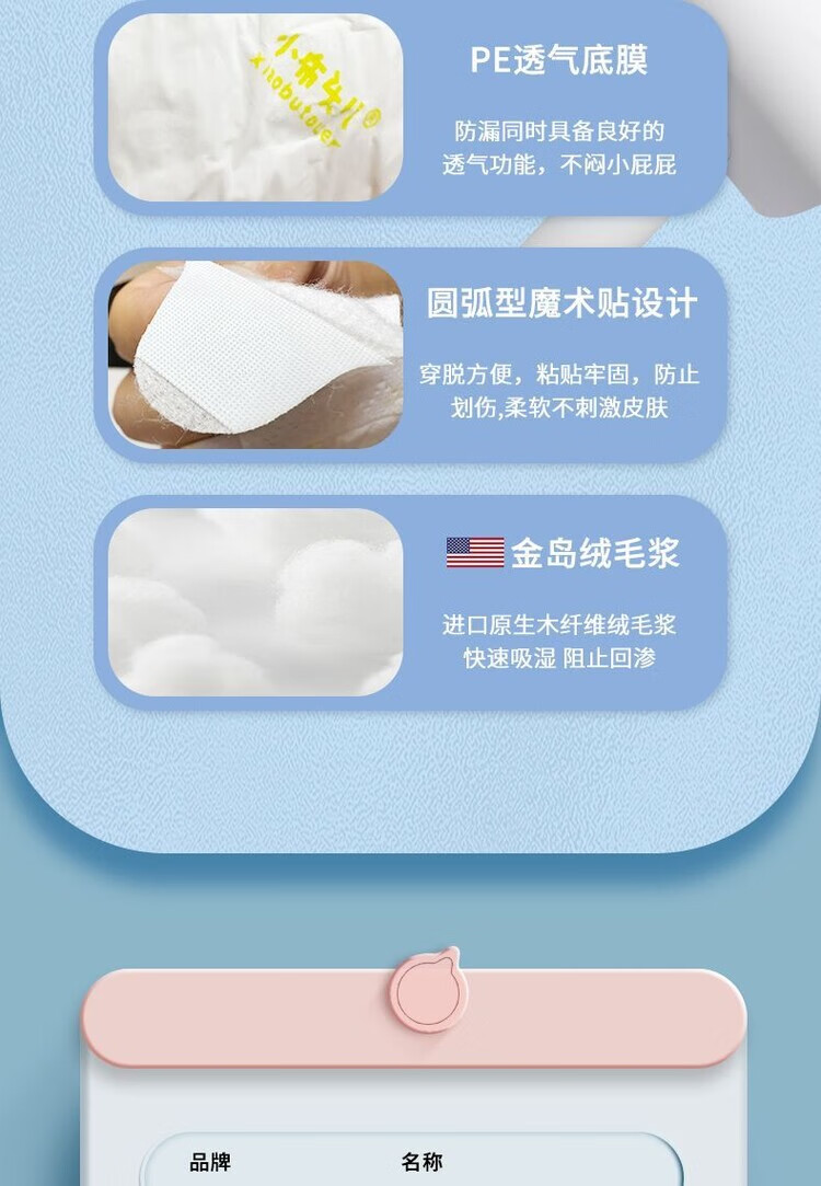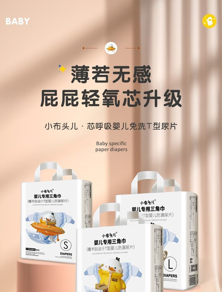 小布头儿小布头三角巾婴儿尿片魔术贴T型隔尿垫巾婴儿一次性尿布超薄透气 魔术贴L码64片(14-20斤)
