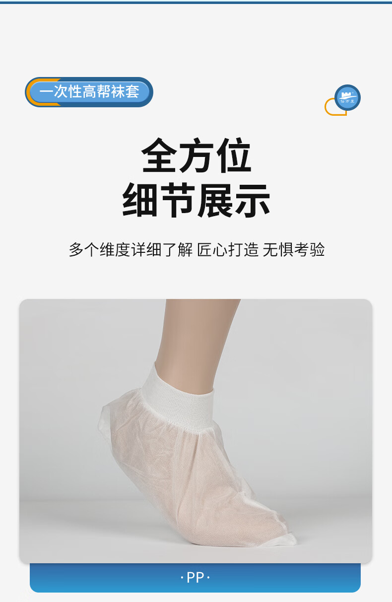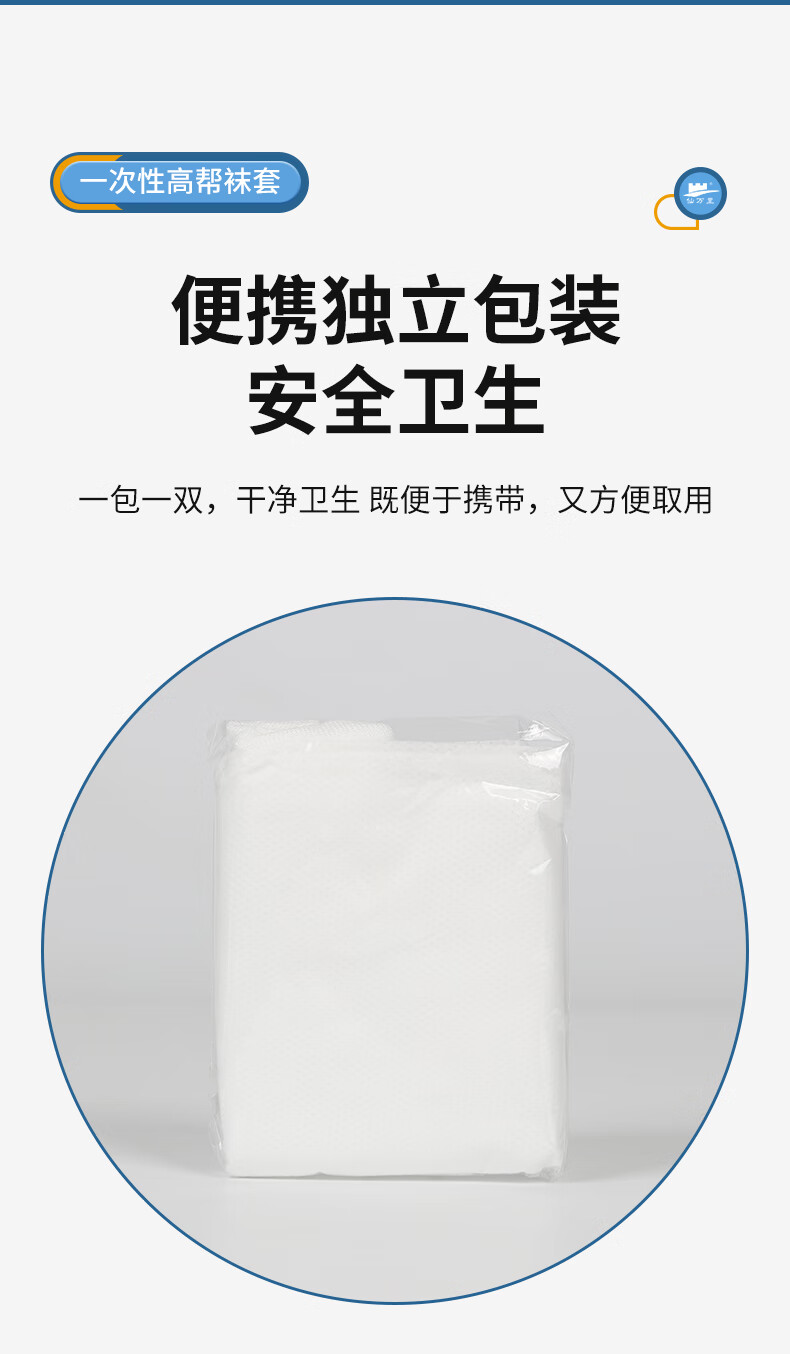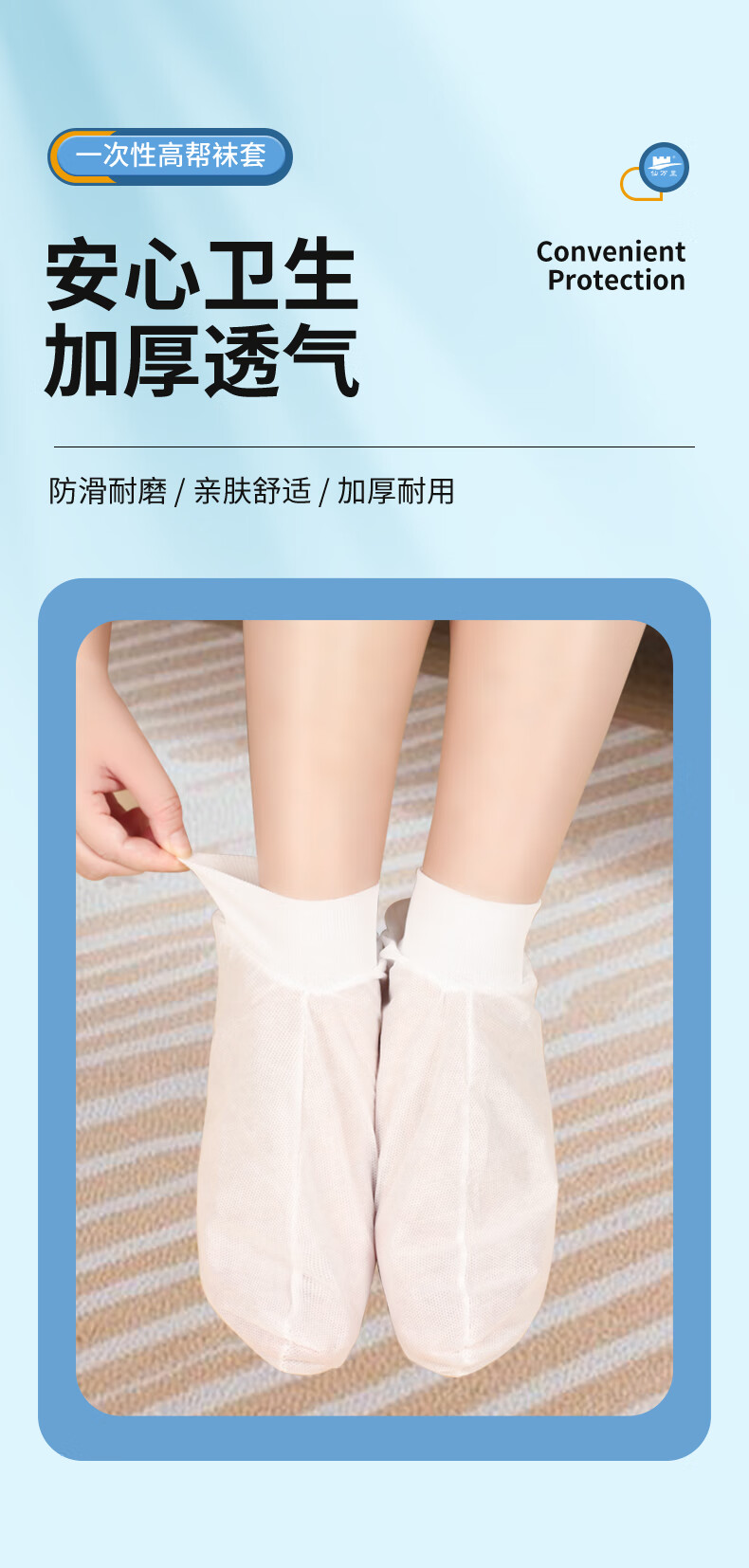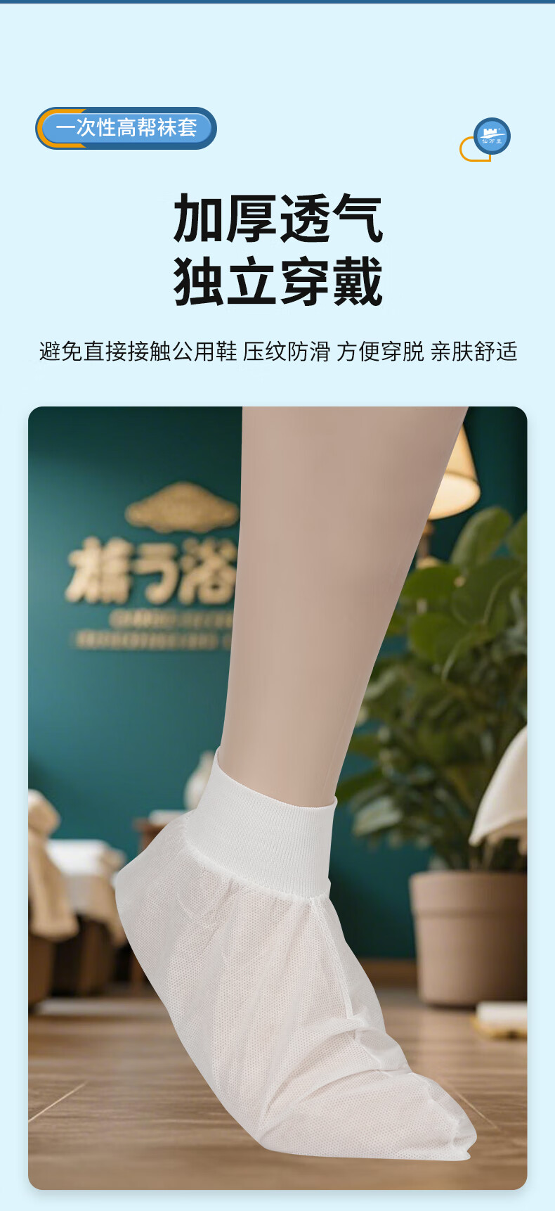 仙万里一次性袜套无纺布足疗按摩滑雪鞋套汗熏蒸室内家用透气加高长脚套 (独立装1双_小包)白色50祇袜套【成人款】