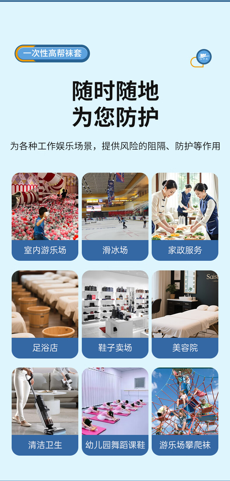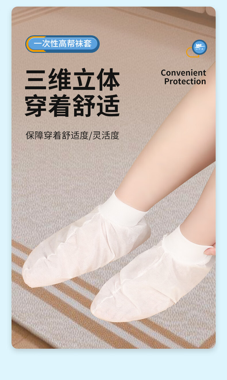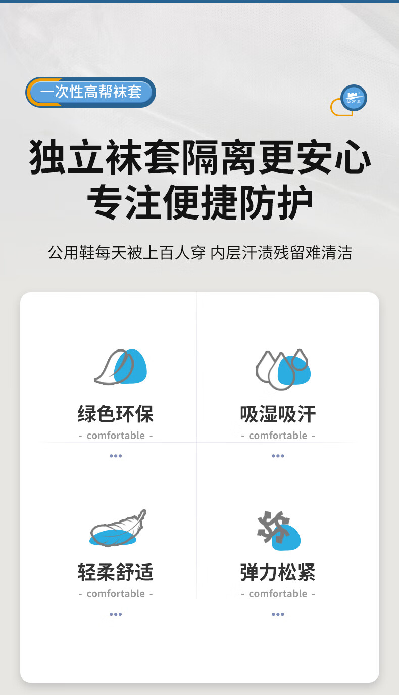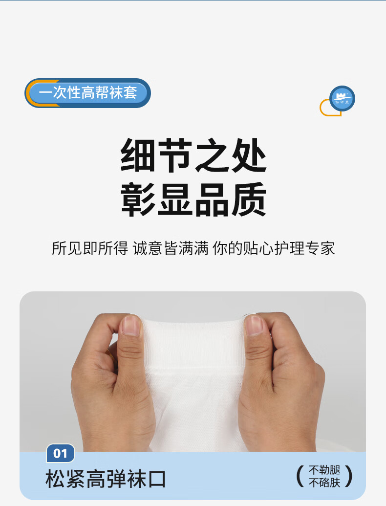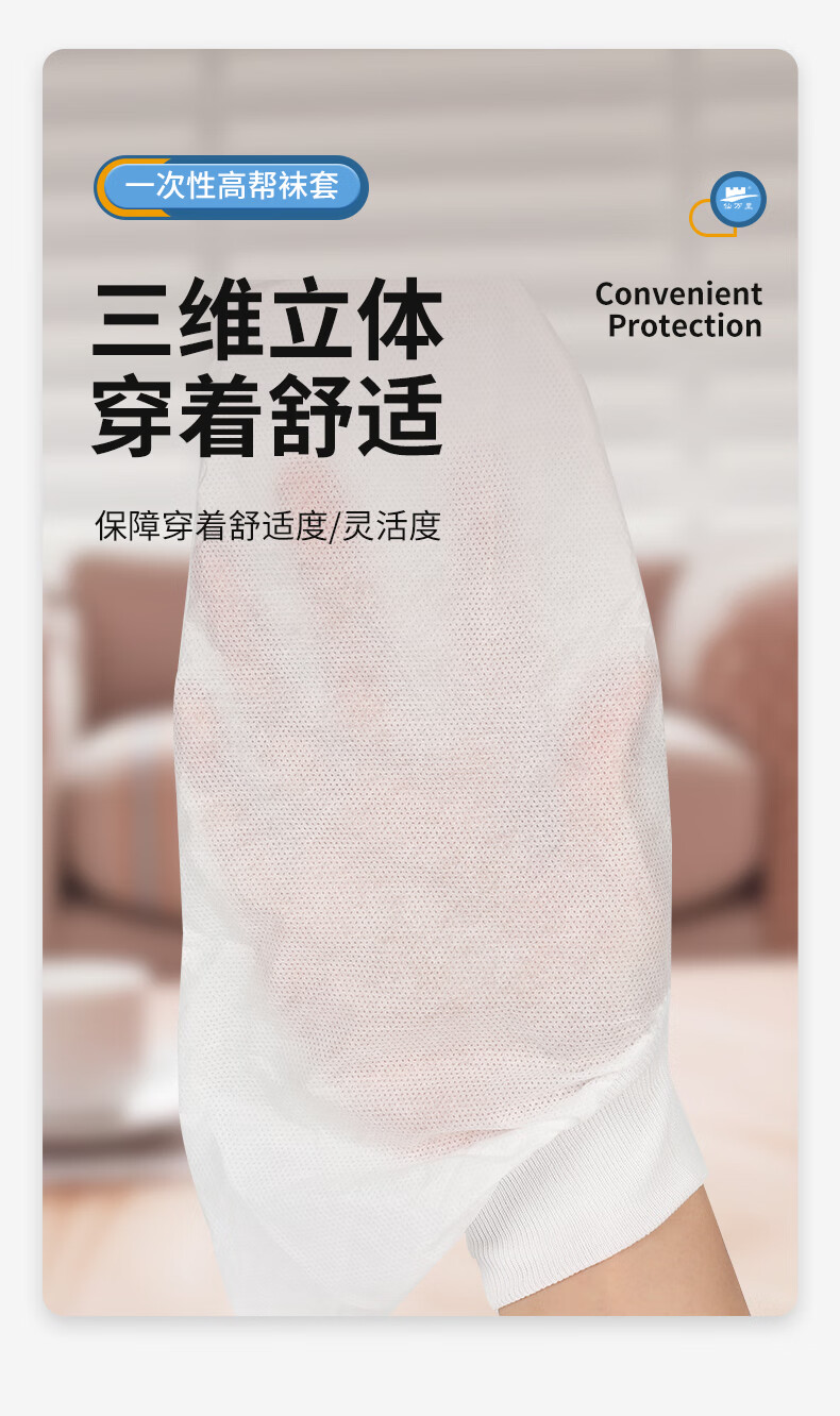 仙万里一次性袜套无纺布足疗按摩滑雪鞋套汗熏蒸室内家用透气加高长脚套 (独立装1双_小包)白色50祇袜套【成人款】