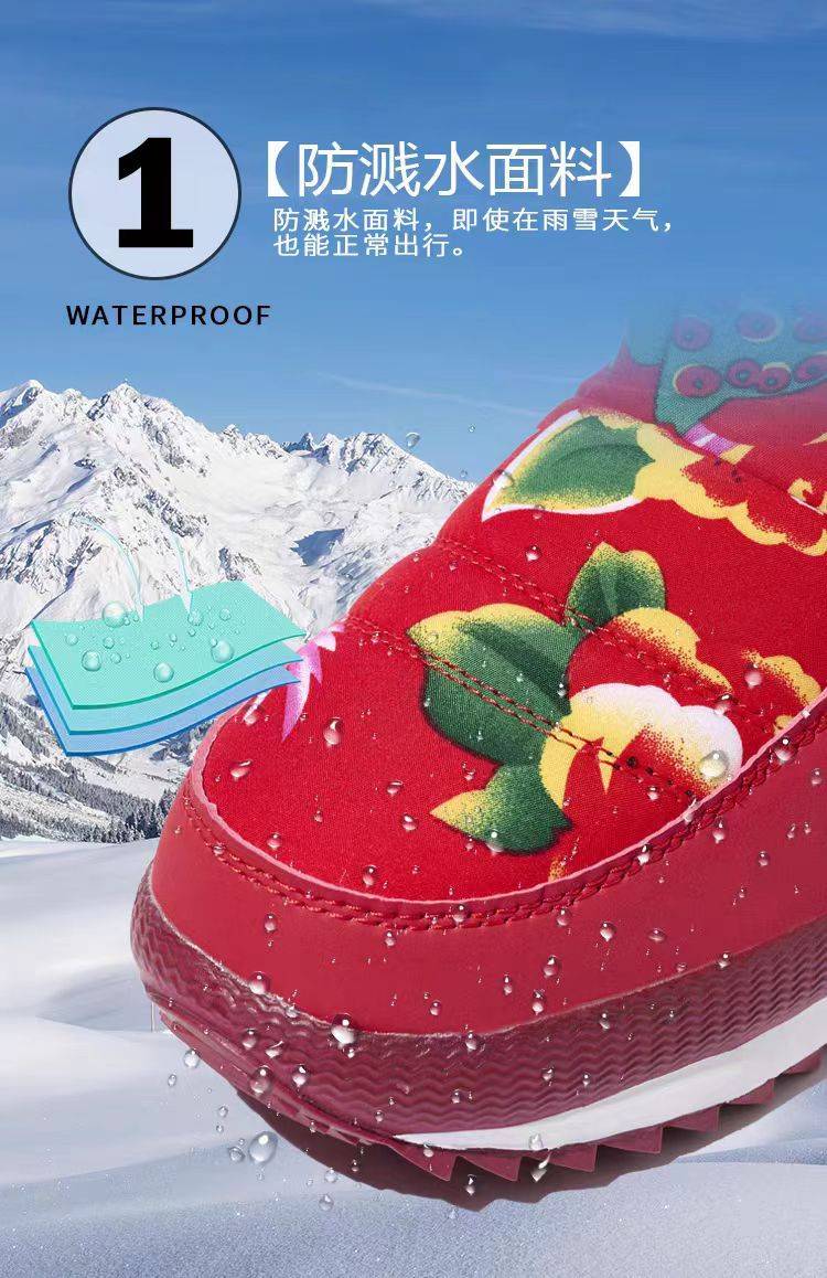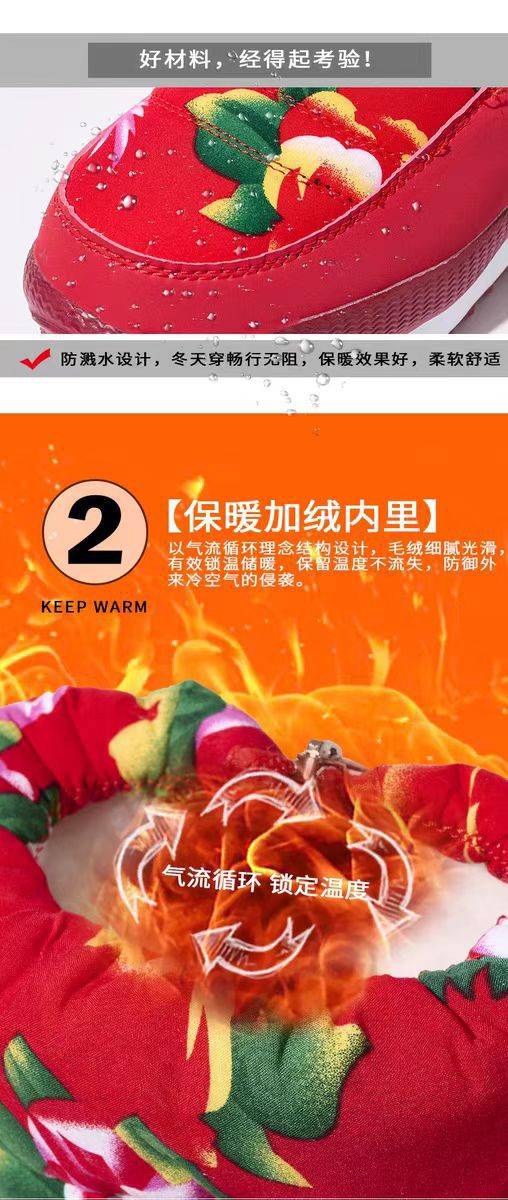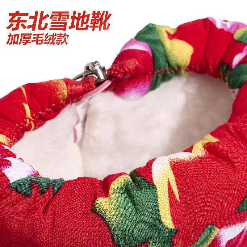 Kangnai Northeast large cotton shoes winter new warm outdoor ski plus velvet thickened large flower internet celebrity travel snow boots drawstring large flower red internet celebrity 35