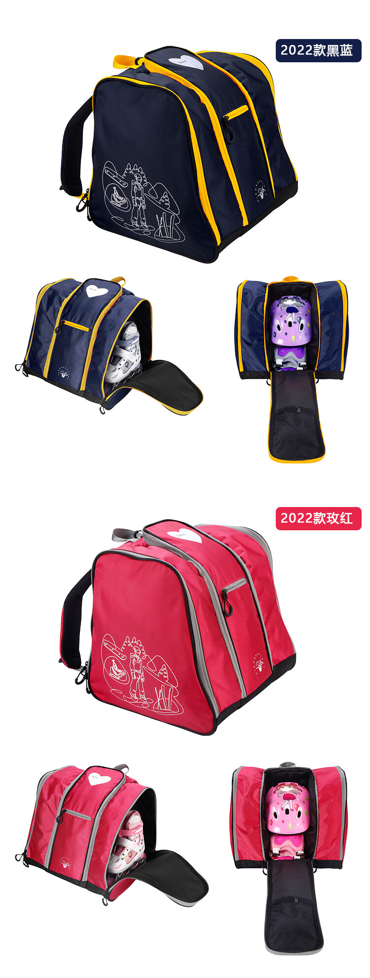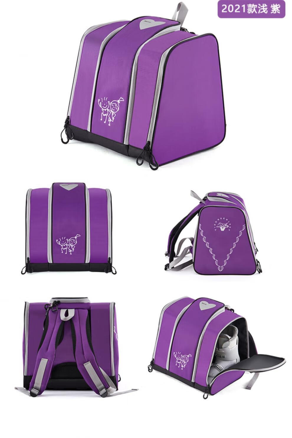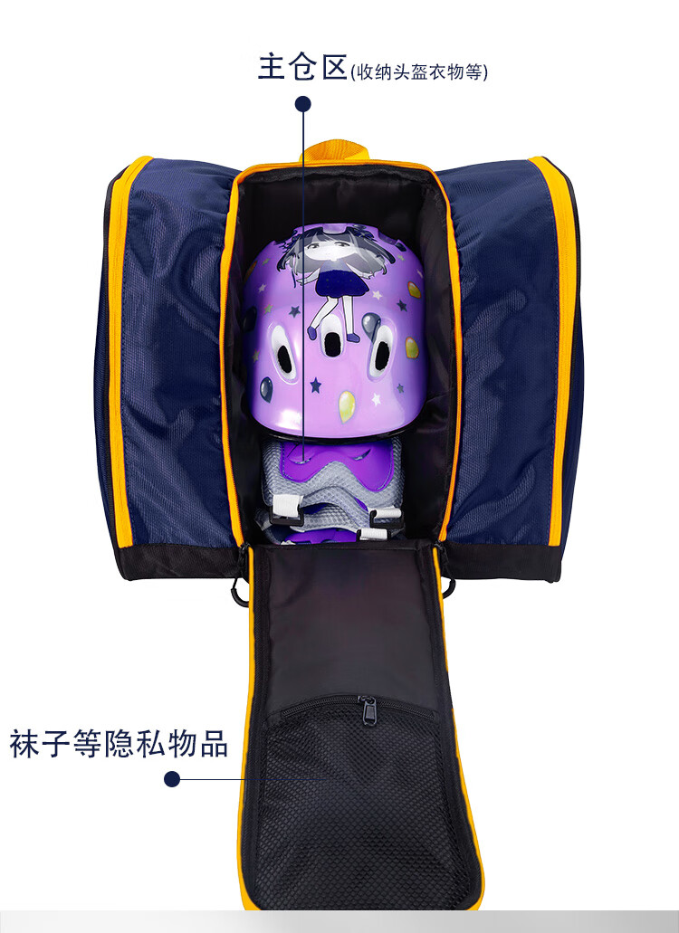 加拿大儿童双肩轮滑鞋背包滑冰花样滑冰包冰刀鞋滑雪鞋收纳包 黑蓝_(42码以下轮滑鞋)