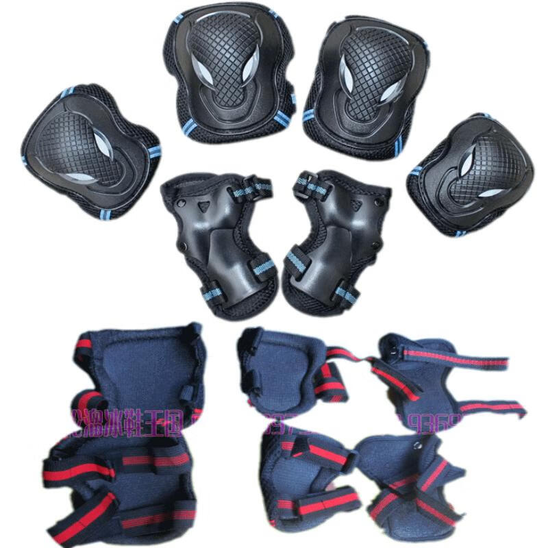 Adult men's and women's anti-fall protective gear, skateboard skates, roller skating, children's knee pads, elbow pads, sports complete set, black and red S (small adult women and children over 6 years old)