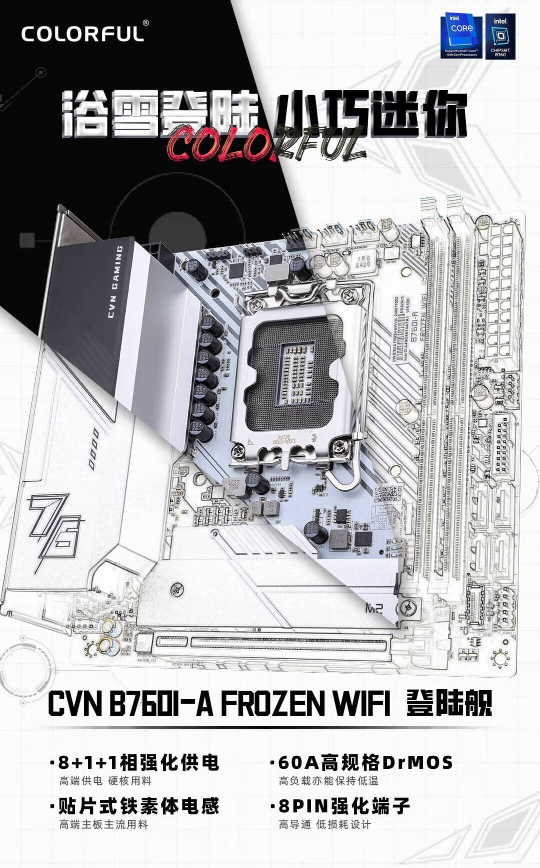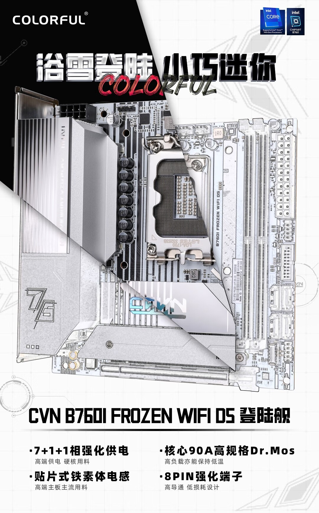 Das farbenfrohe Motherboard B760M/Z790M unterstützt INTEL Intel CPU12.-14. Generation CPU12600KF/14600KF/14700KF/Desktop-Computer-Motherboard CVN Ark Z790 D5 WIFI