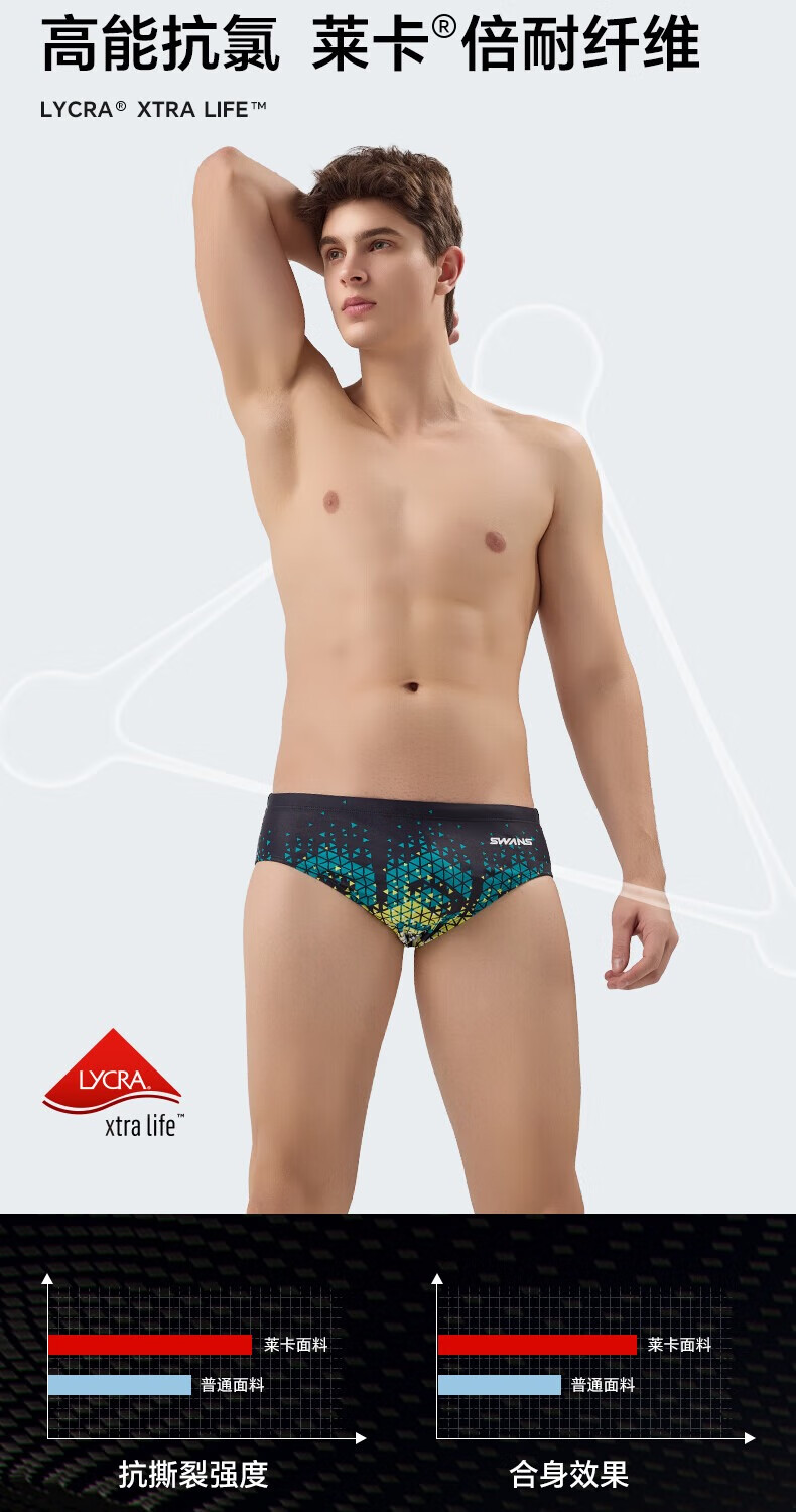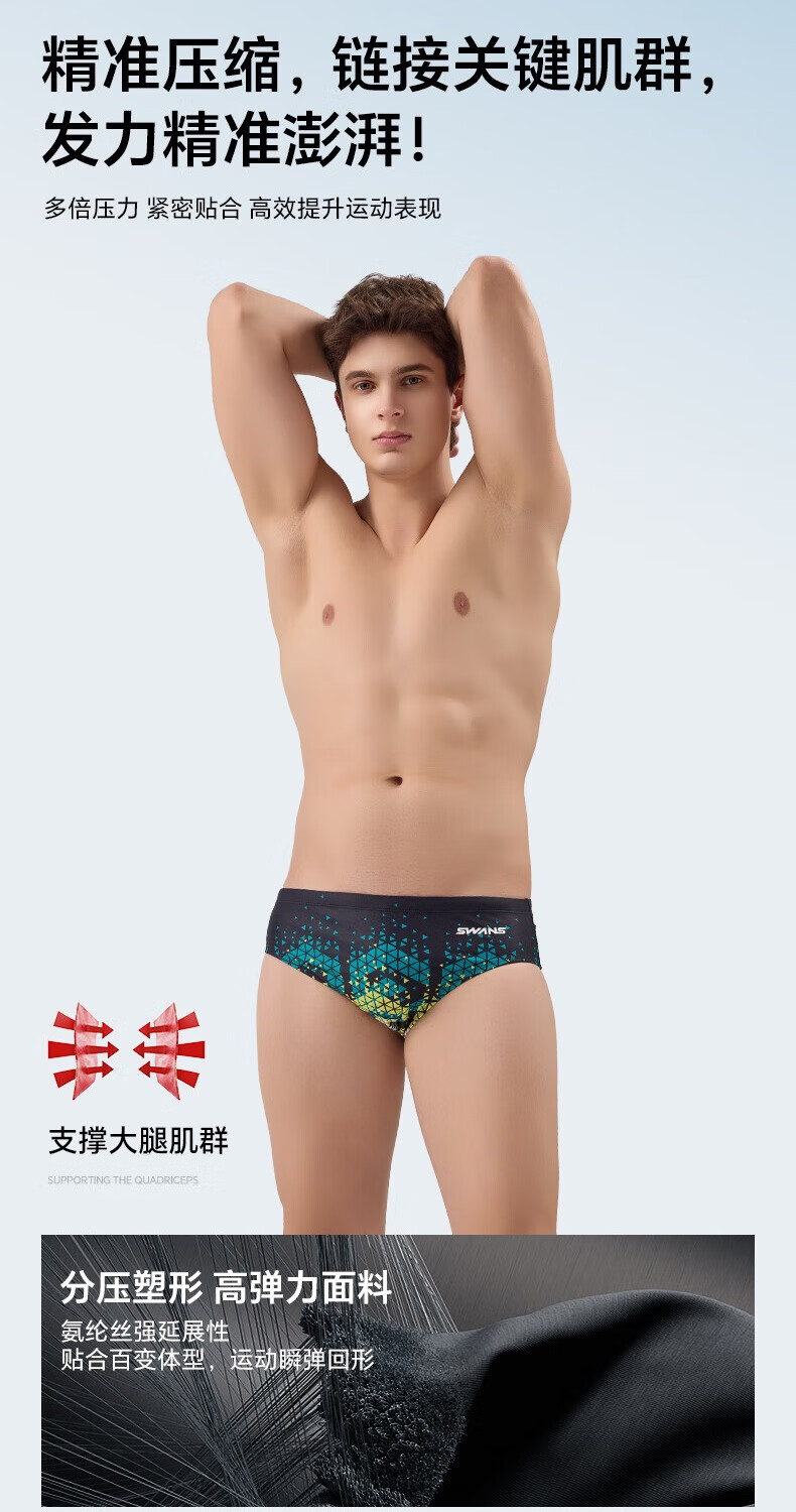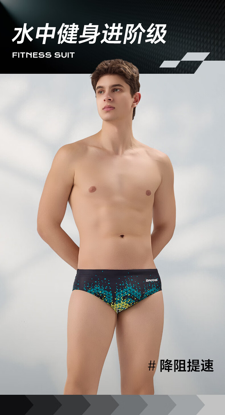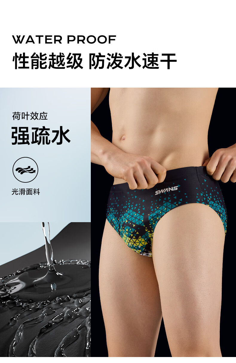 SWANS swimming trunks men's triangle sun protection anti-chlorine quick-drying adult professional racing swimming anti-embarrassment swimming trunks black XL