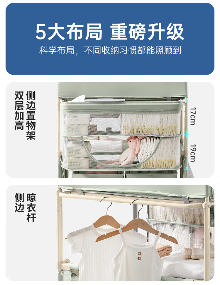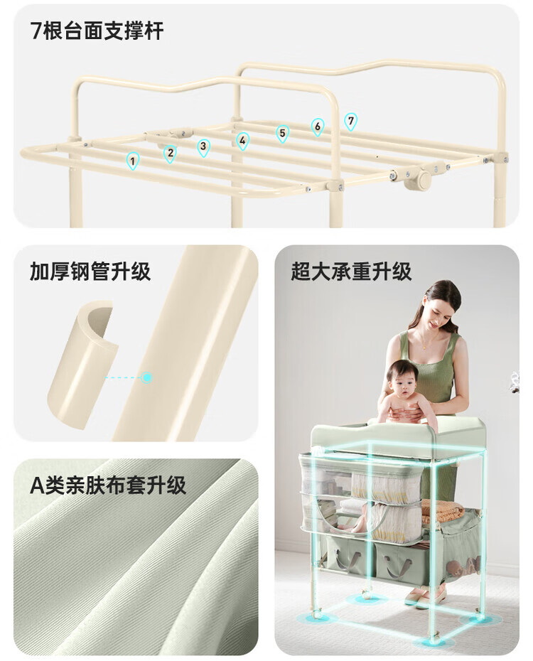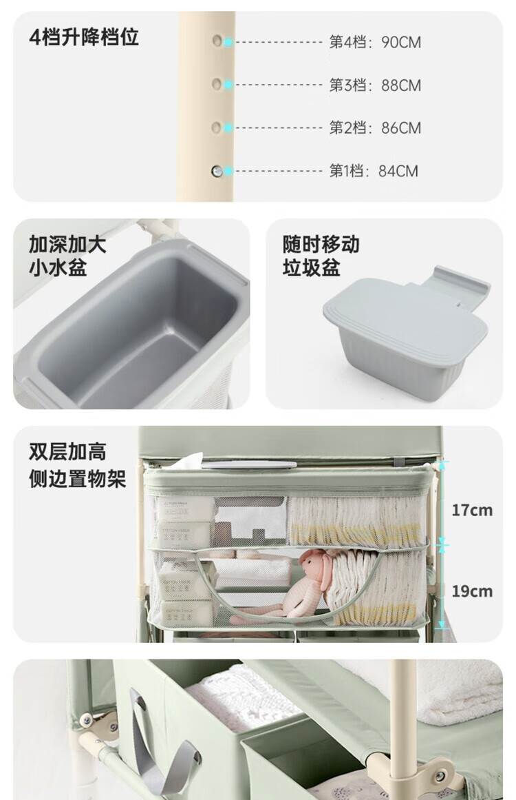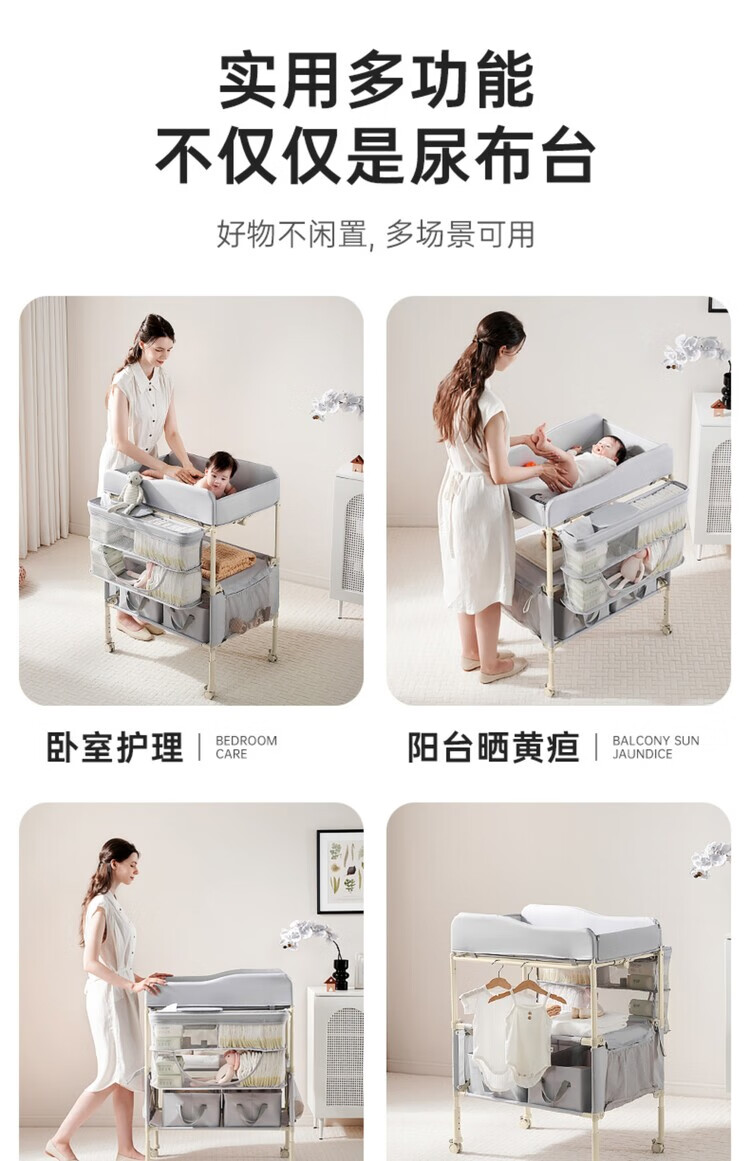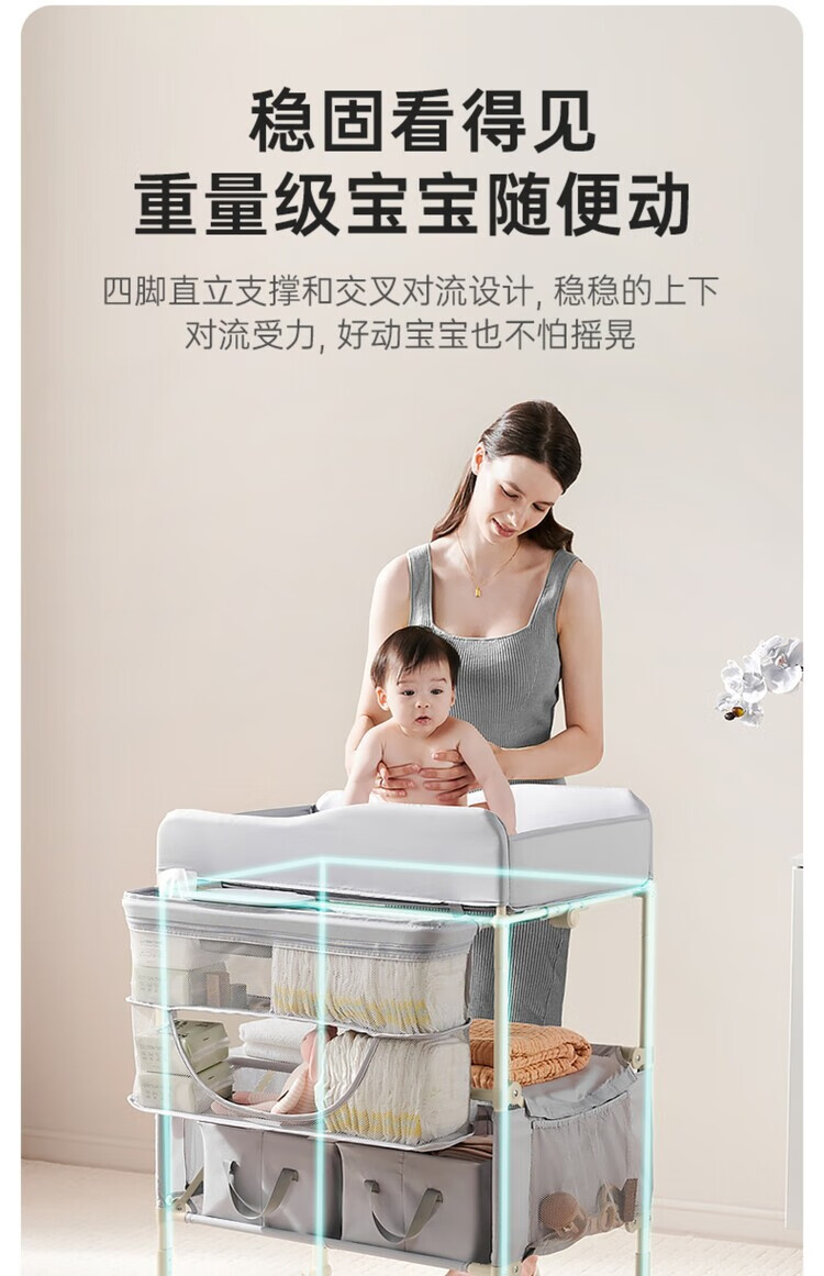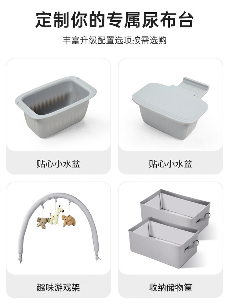 Table à langer Sweeby, table de puériculture, table de bain bébé, table à langer tactile, amovible et pliable, gris nébuleuse, fonction pliable + petite bassine d'eau + poubelle