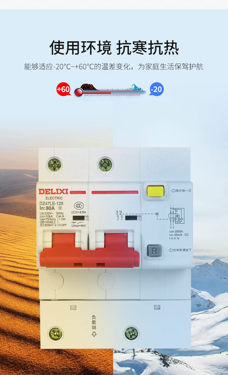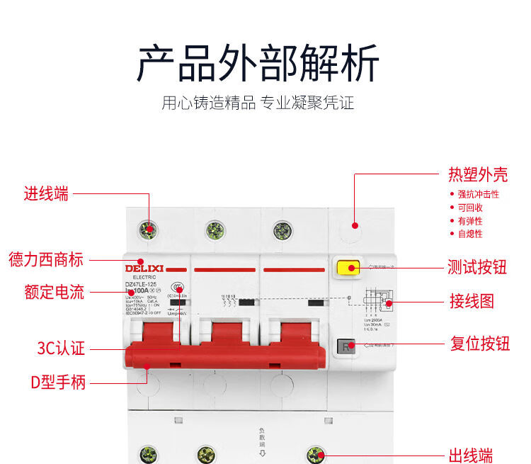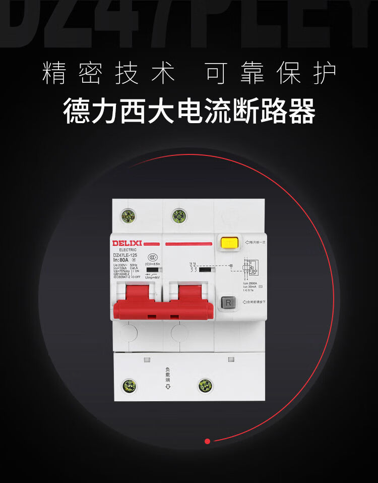 德力西电气DZ47LE1251234PN大电流漏电空开关漏电保护器断路器 80A 3P+N