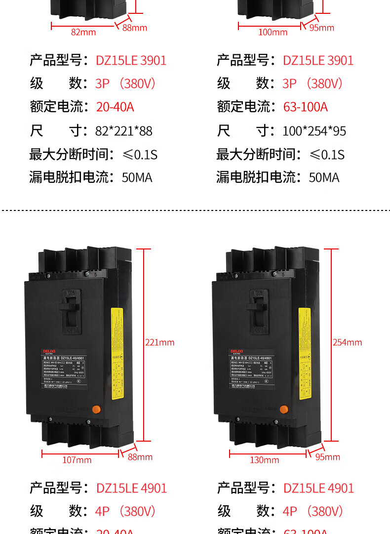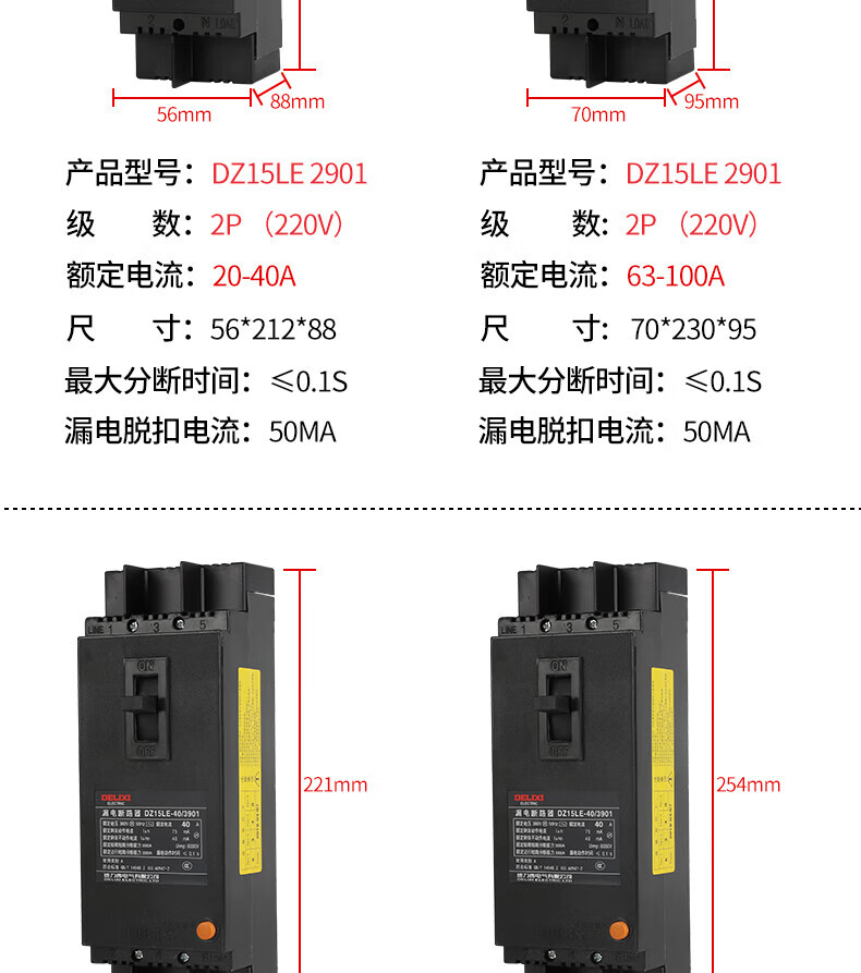 赛乐透漏电保护器1004901三相四线断路器空开开关 2P 10A