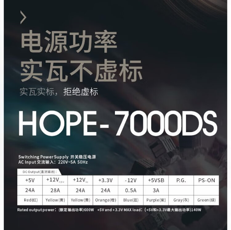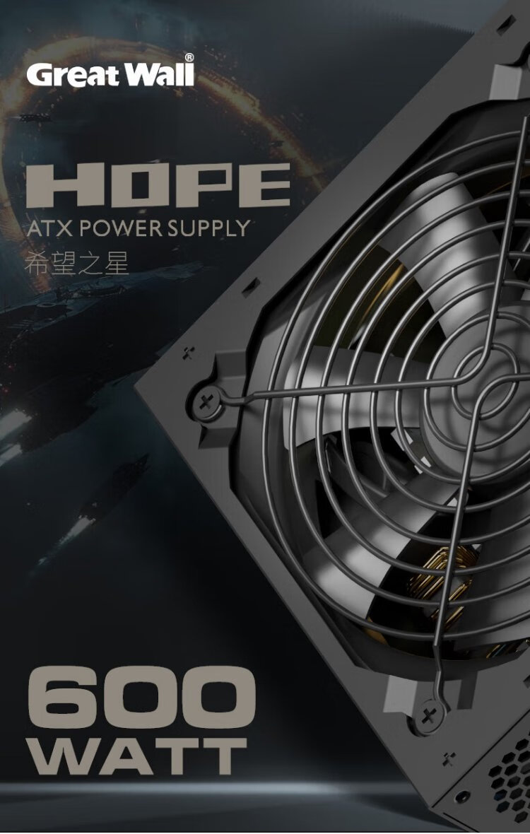 600-W-Computer-Netzteil HOPE-7000DS mit Great-Wall-Bewertung (zwei 8-polige/75 cm lange Kabel/breit/temperaturgesteuerter Lüfter/unabhängiger Schalter)