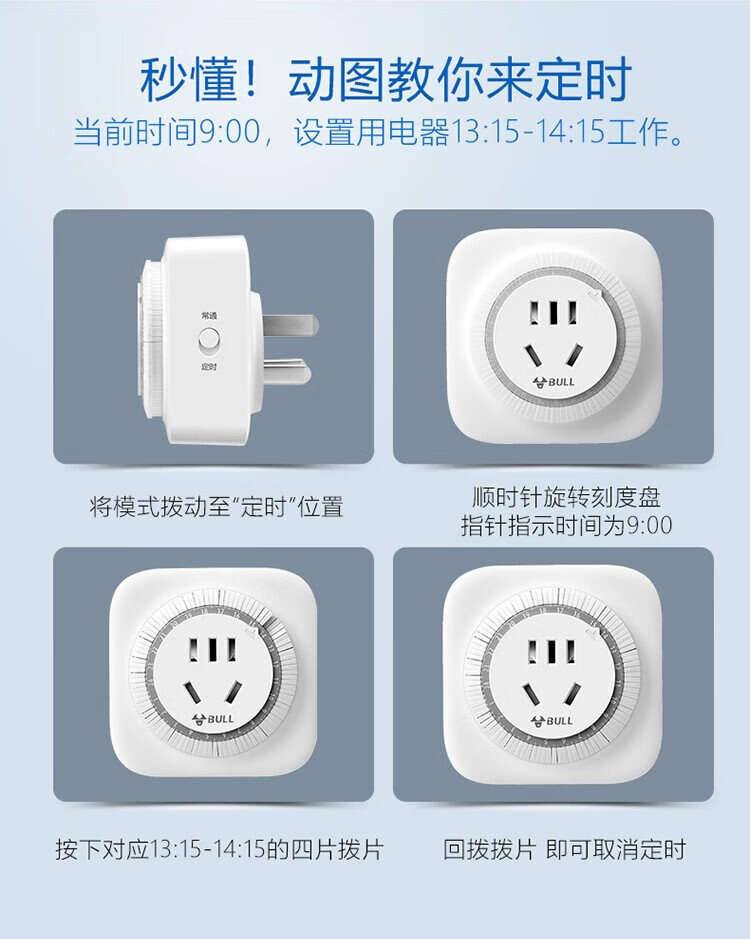 公牛(BULL)机械定时器插座/转换器 通断电 24小时循环 电热水器适用/手机伴侣 GND-2