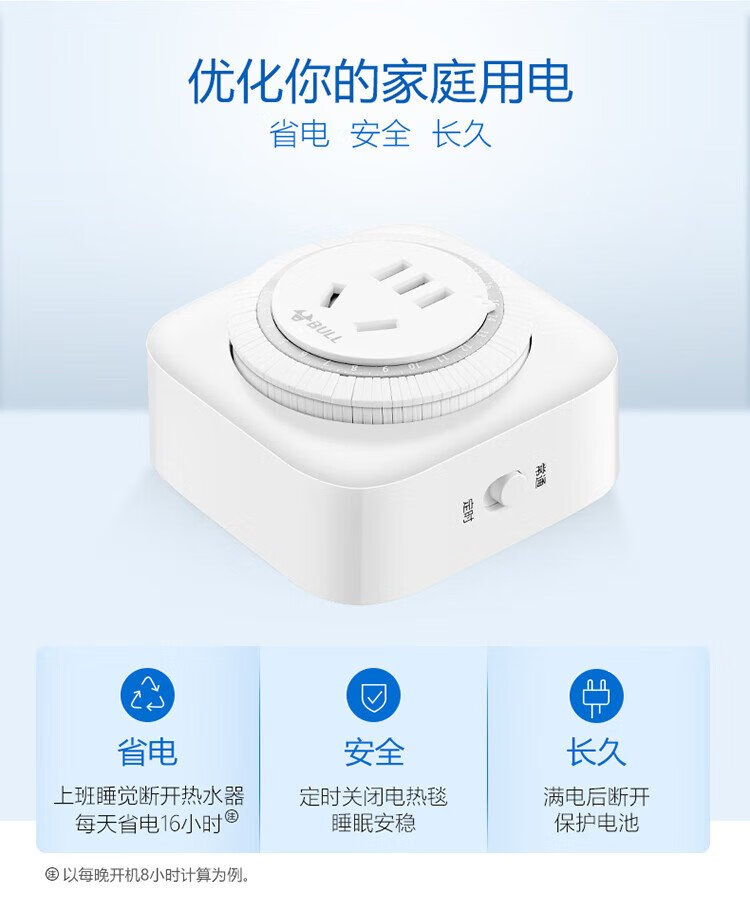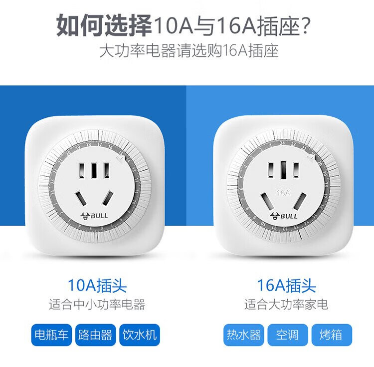 公牛(BULL)大功率机械定时器插座/转换器 16A大功率4000W(大孔位插孔适配大功率插头)GND-2D