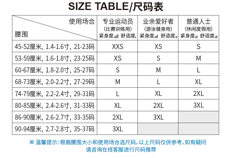 USA(inch) 28-30 30-32 32-34 34-38 38-42