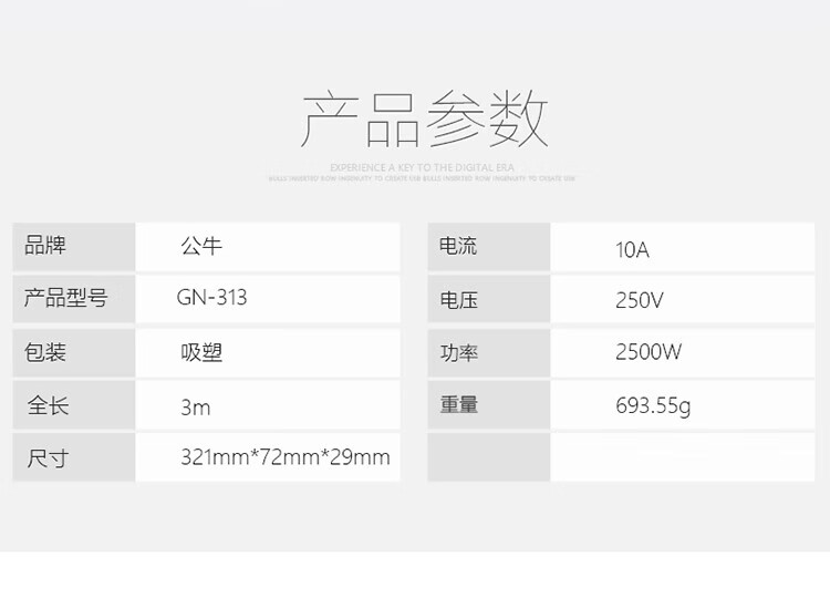 公牛(BULL)GN-313 插座/插线板/插排/排插/接线板/拖线板 6位分控全长3米 超功率保护插座
