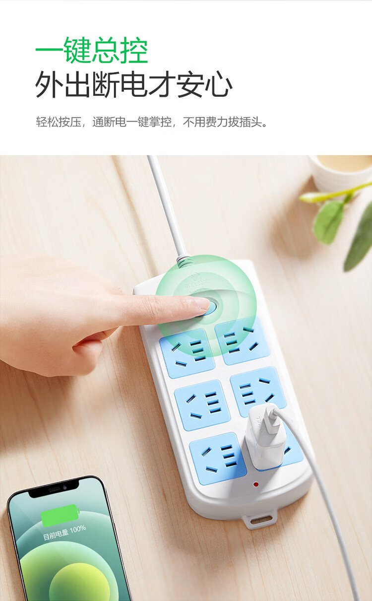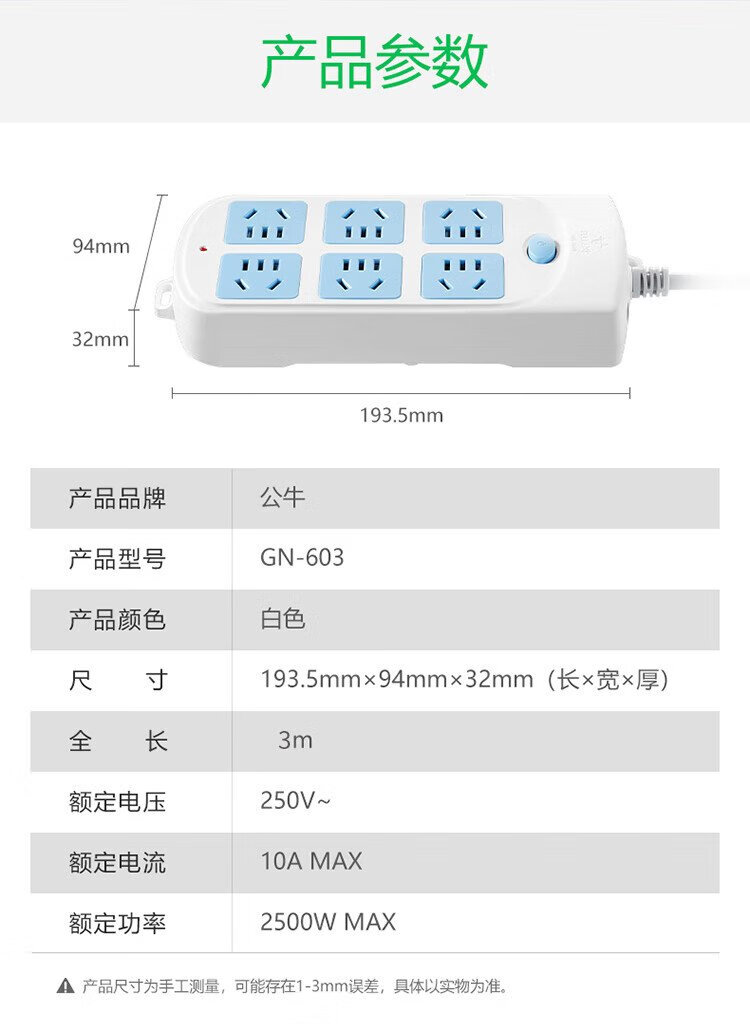 公牛(BULL)GN-603 插座/插线板/插排/排插/接线板/拖线板 6位总控全长3米超功率保护