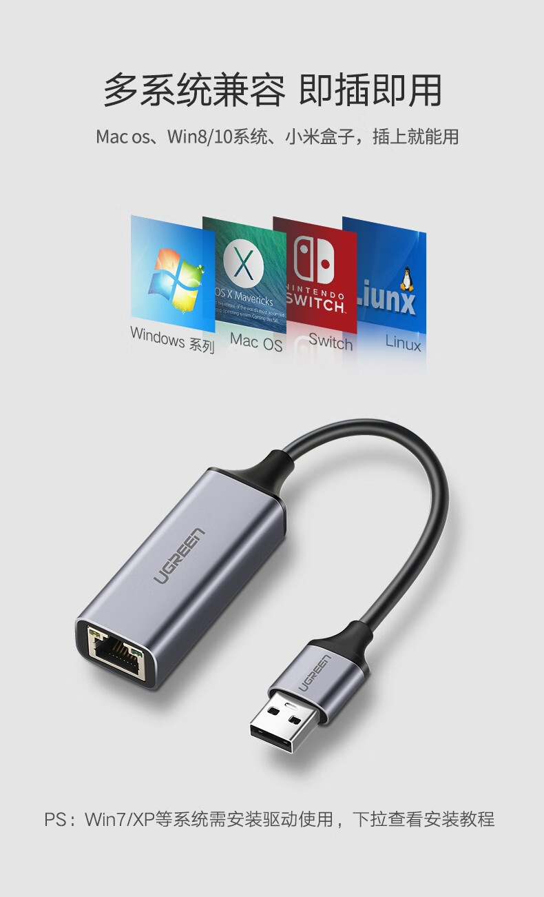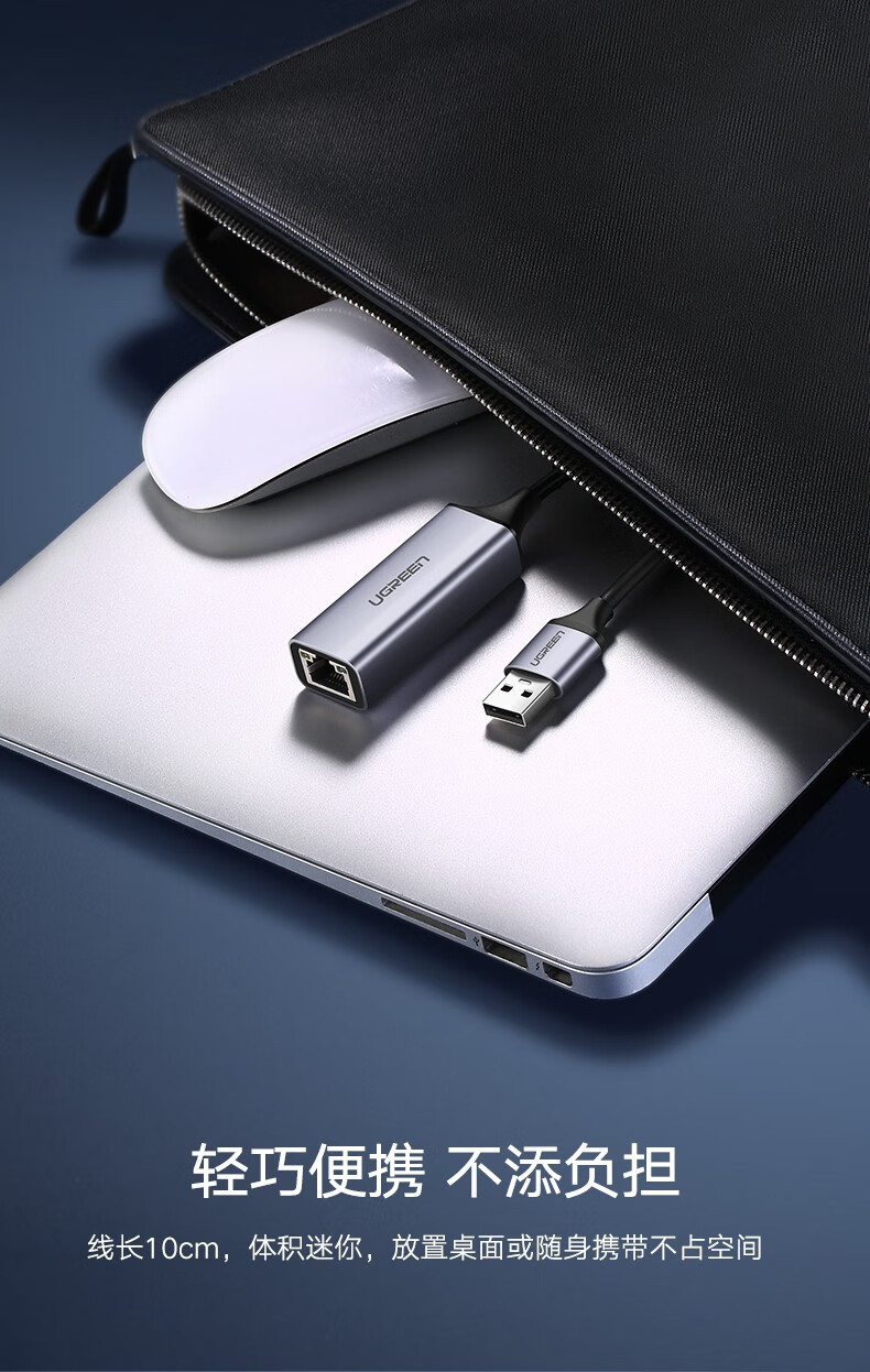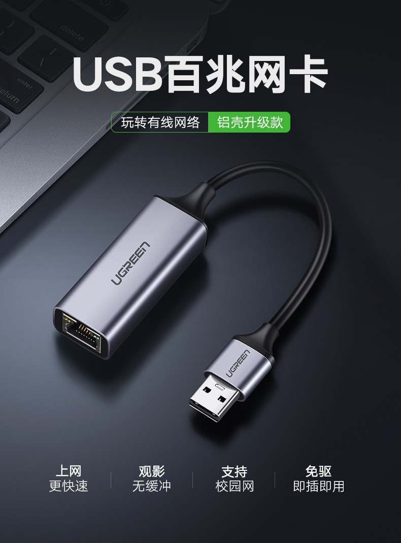 UGREEN USB to 100M wired network card RJ45 network cable interface suitable for Mac box laptop external Ethernet port converter black compact model (small and easy to carry) 30305