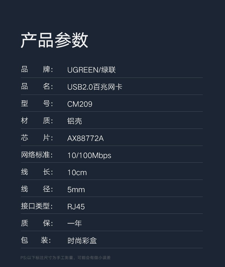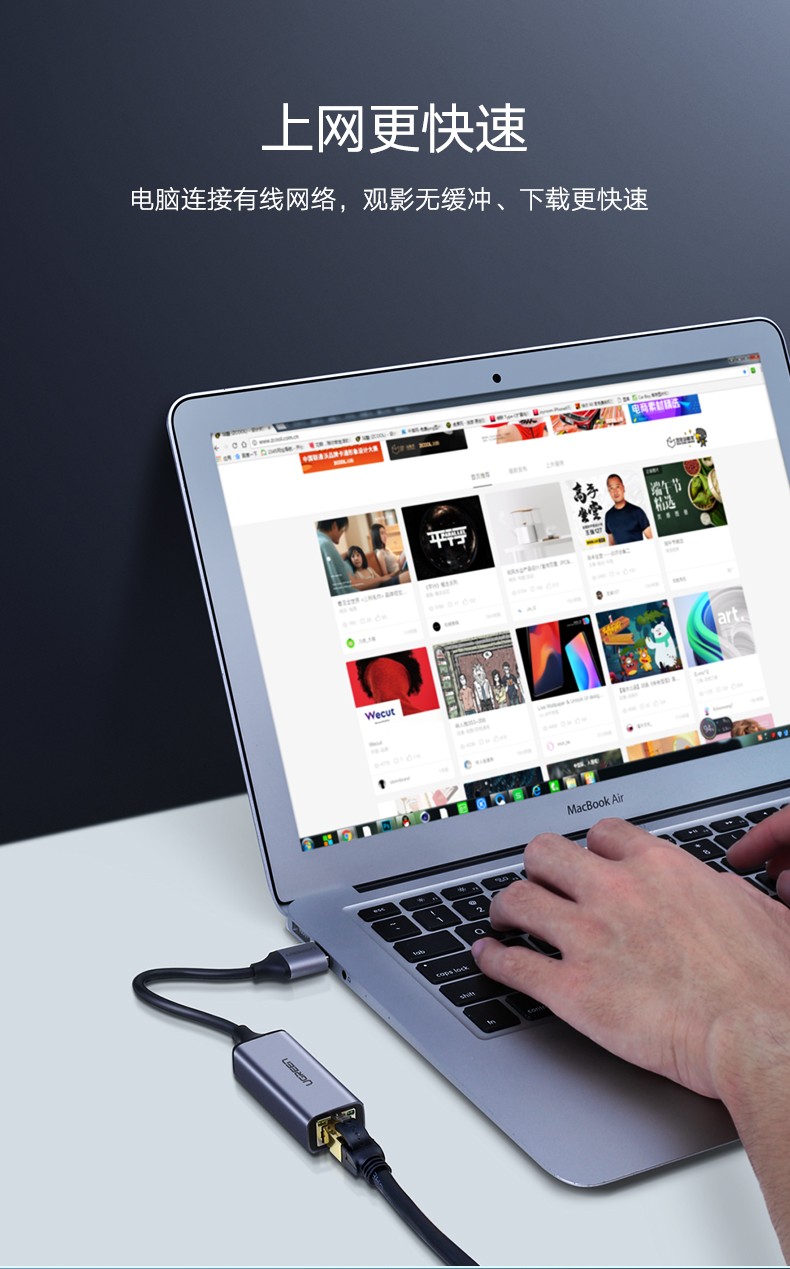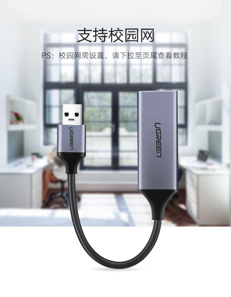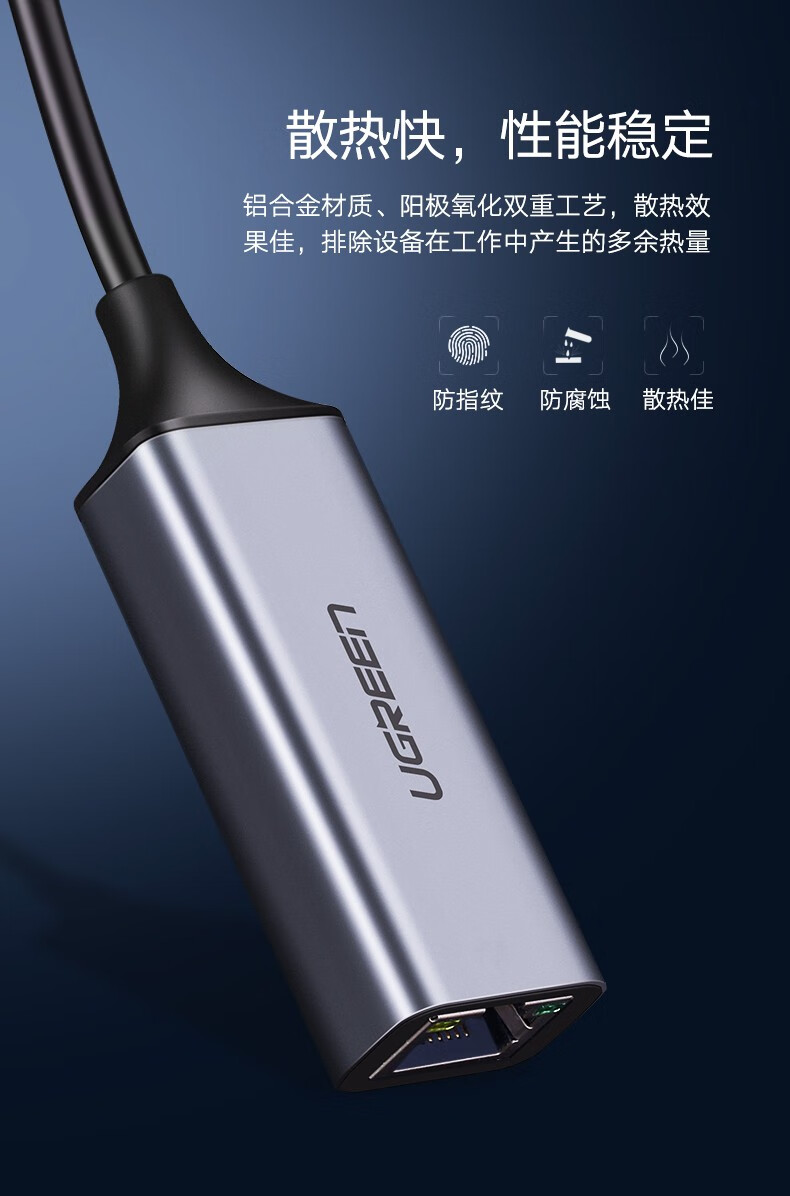 UGREEN USB to 100M wired network card RJ45 network cable interface suitable for Mac box laptop external Ethernet port converter black compact model (small and easy to carry) 30305