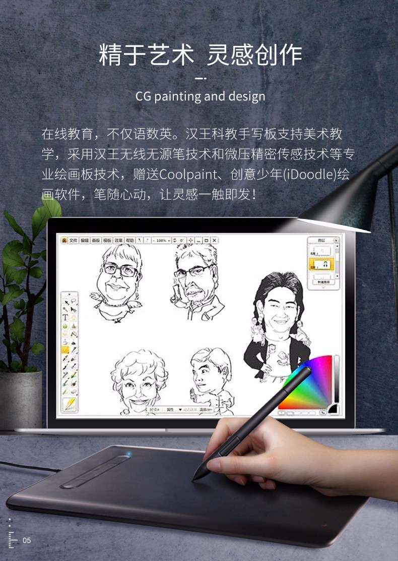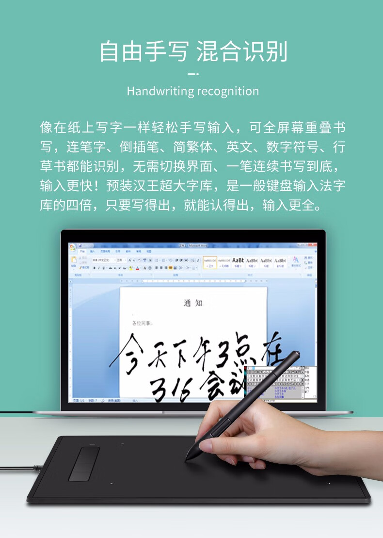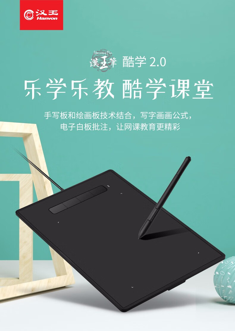 汉王(Hanvon)手写板酷学2.0易教小方 老人写字电脑手写输入板 绘画板网课教学钉钉ppt批注板 汉王科教板易教