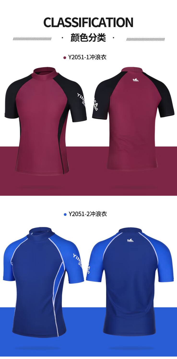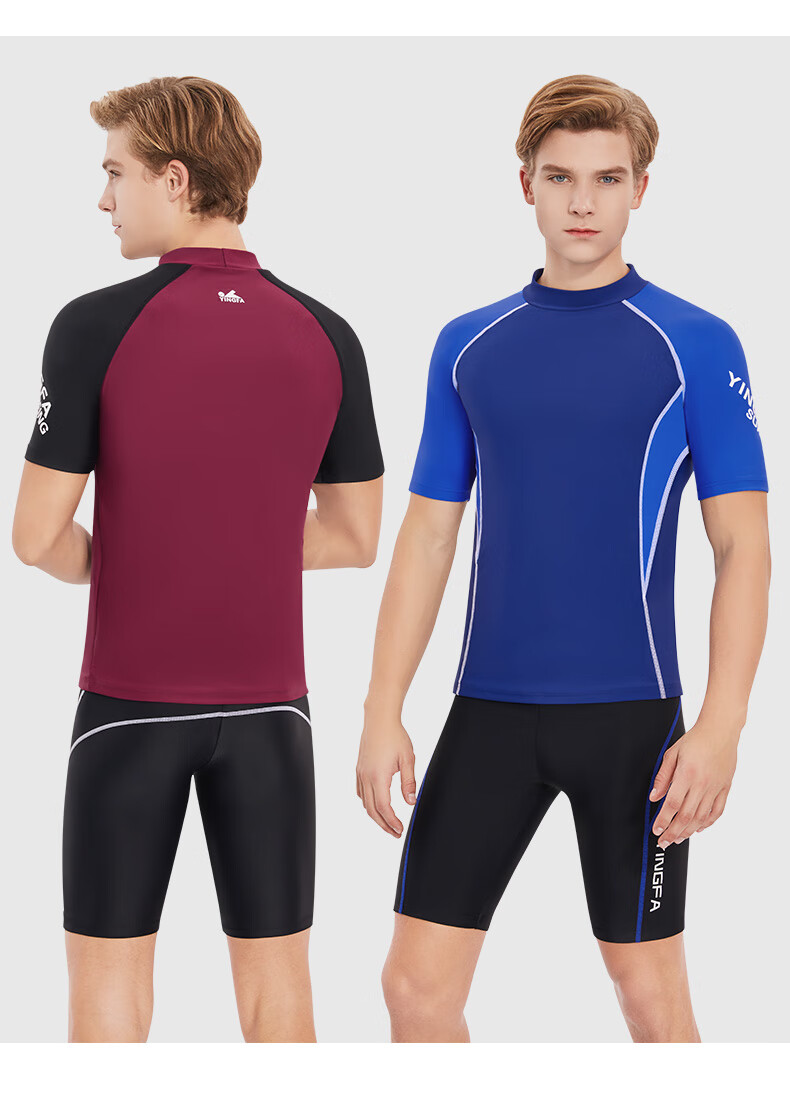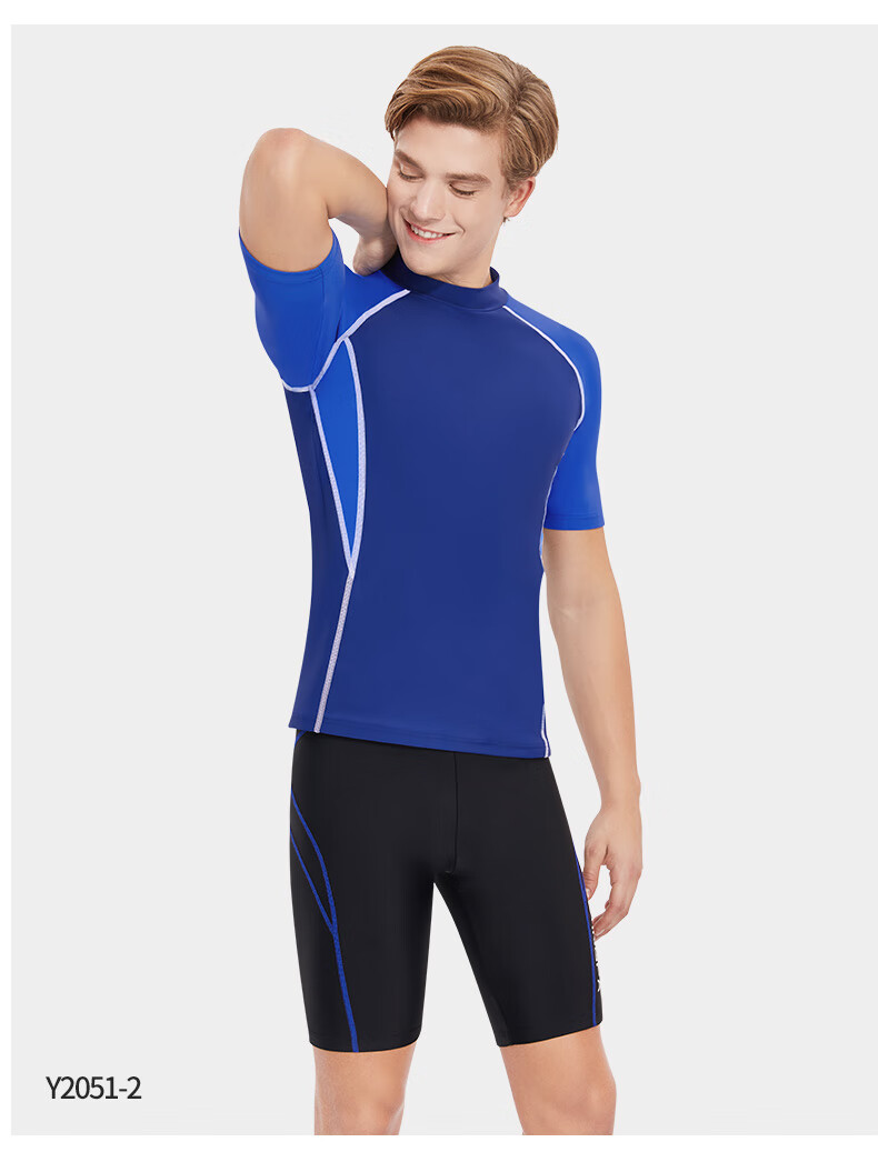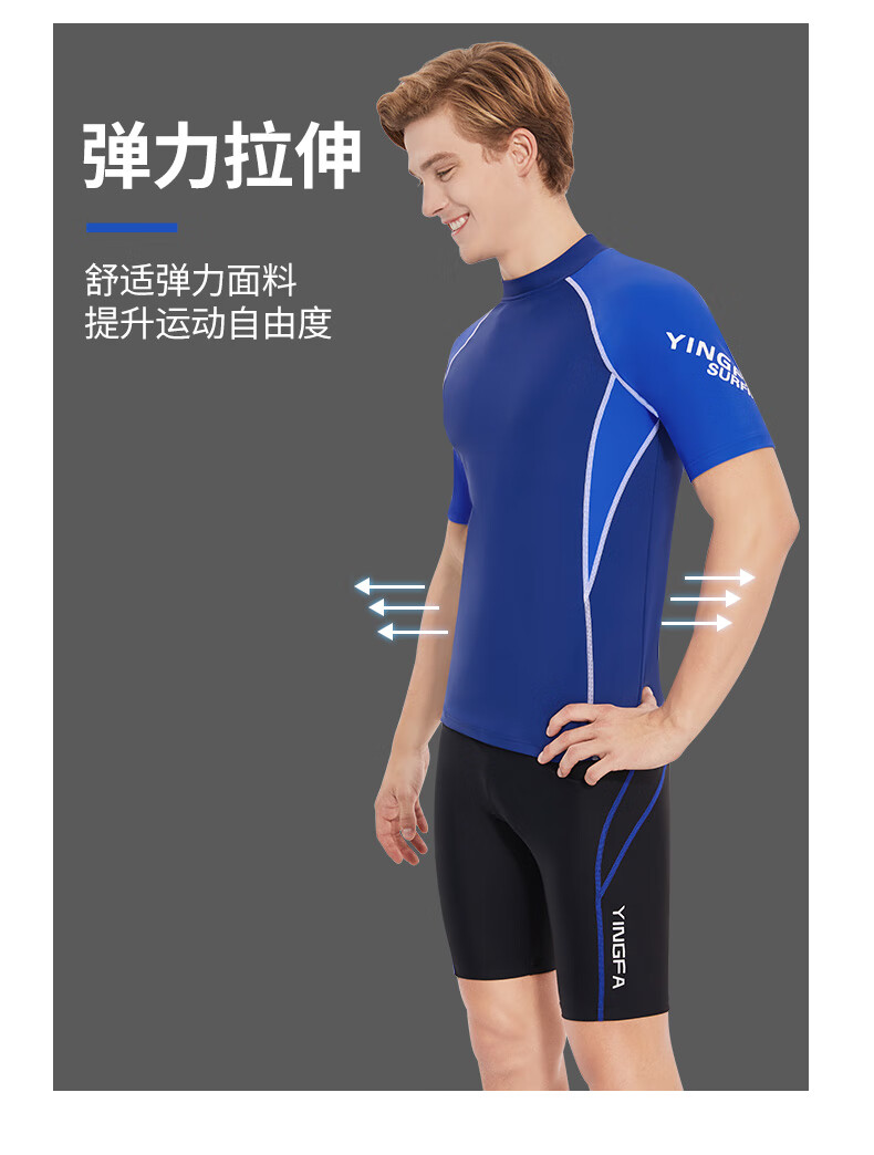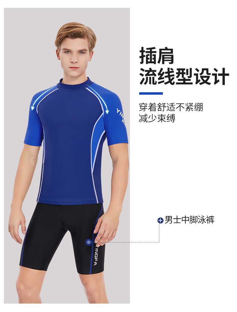 英发(YINGFA)男士泳衣 冲浪衣 短袖弹力舒适速干抗氯游泳衣男 Y2051-2 蓝色/浅蓝 2XL (175-180厘米/67.5-75公斤)