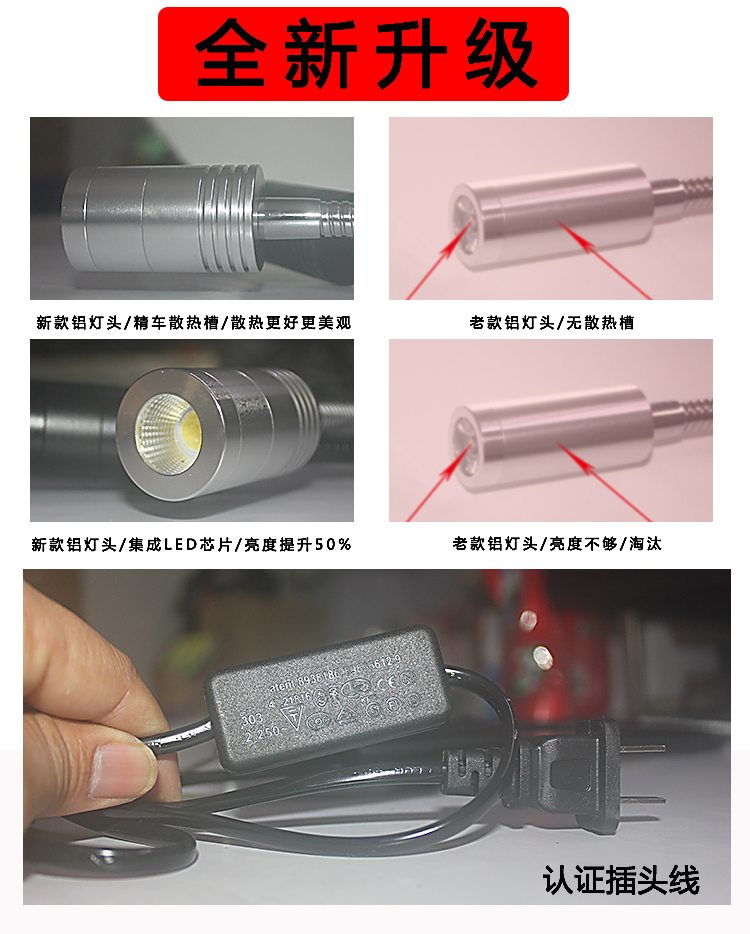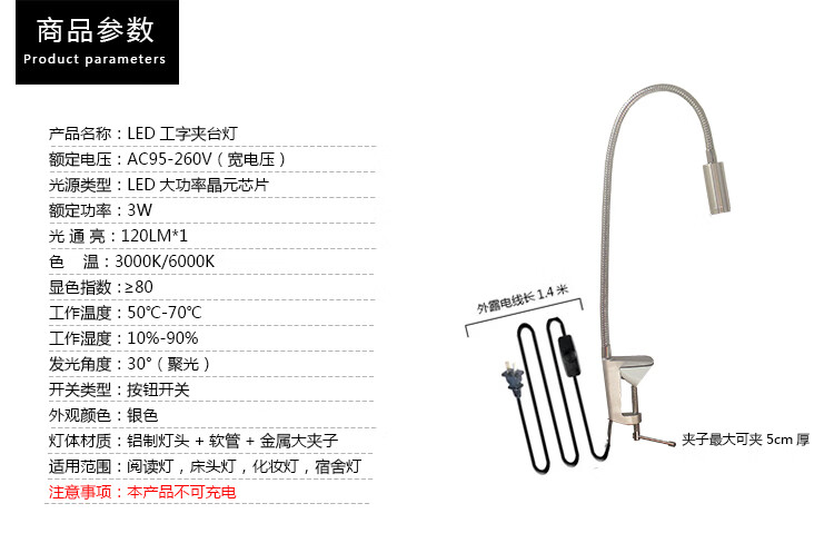 LED长臂台灯折叠弯曲工字夹式30度聚光雕刻车间维修绘图工作台灯 G夹-T10-白光-加长版 按钮开关