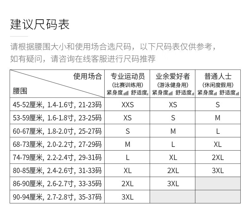 USA(inch) 28-30 30-32 32-34 34-38 38-42