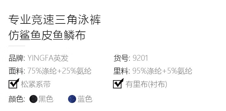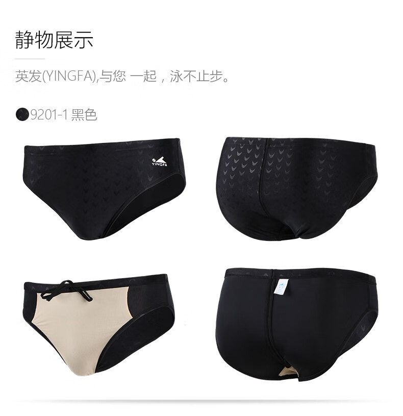 英发(YINGFA) 英发男士仿鲨鱼皮三角泳裤 竞速耐氯训练比赛专用速干游泳裤短裤 9201-黑色-非专业训练请拍大1码 L 【建议腰围:74-79厘米】