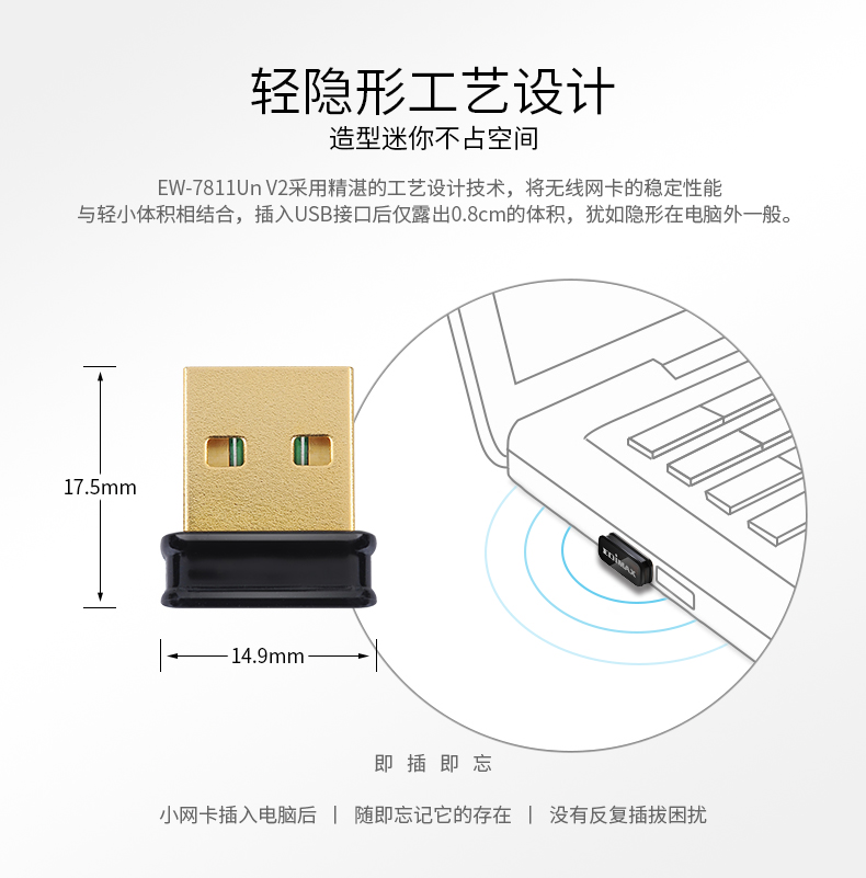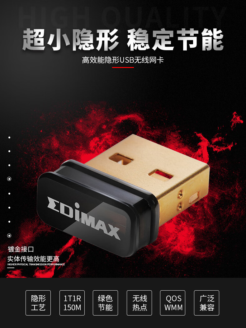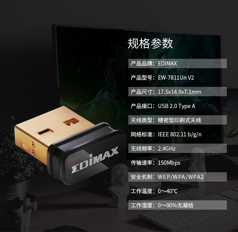 EDiMAX EW-7811Un V2非免驱迷你USB无线网卡 wifi接收器发射器 150M 支持windows/linux/Mac系统