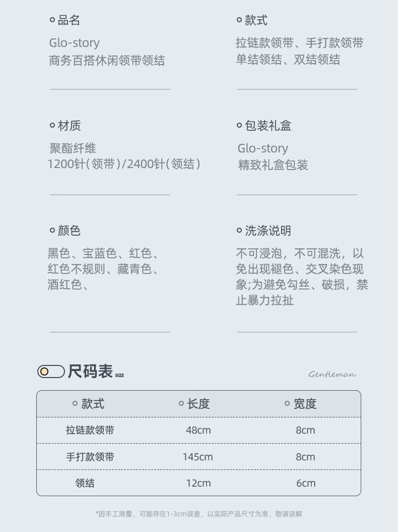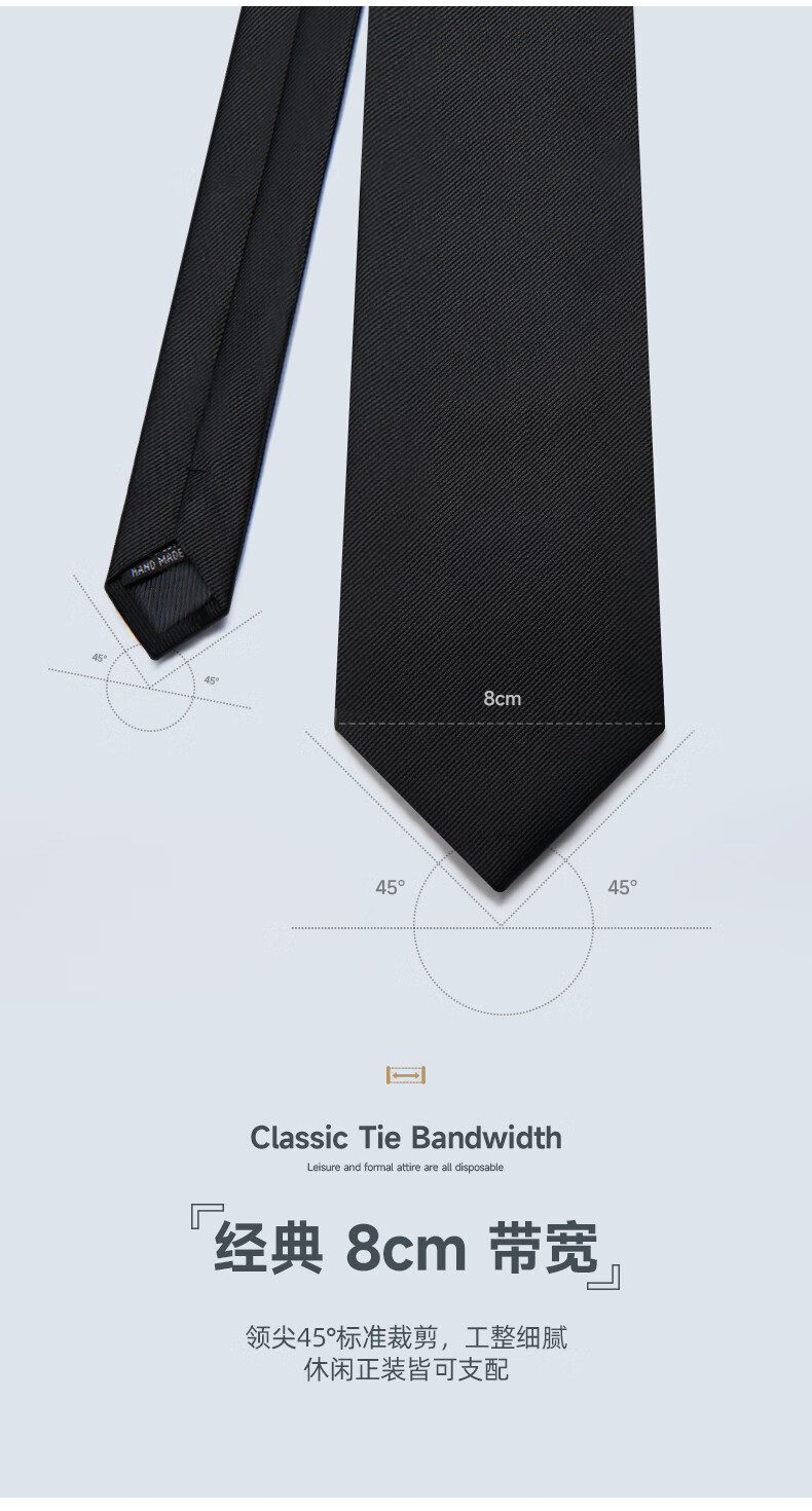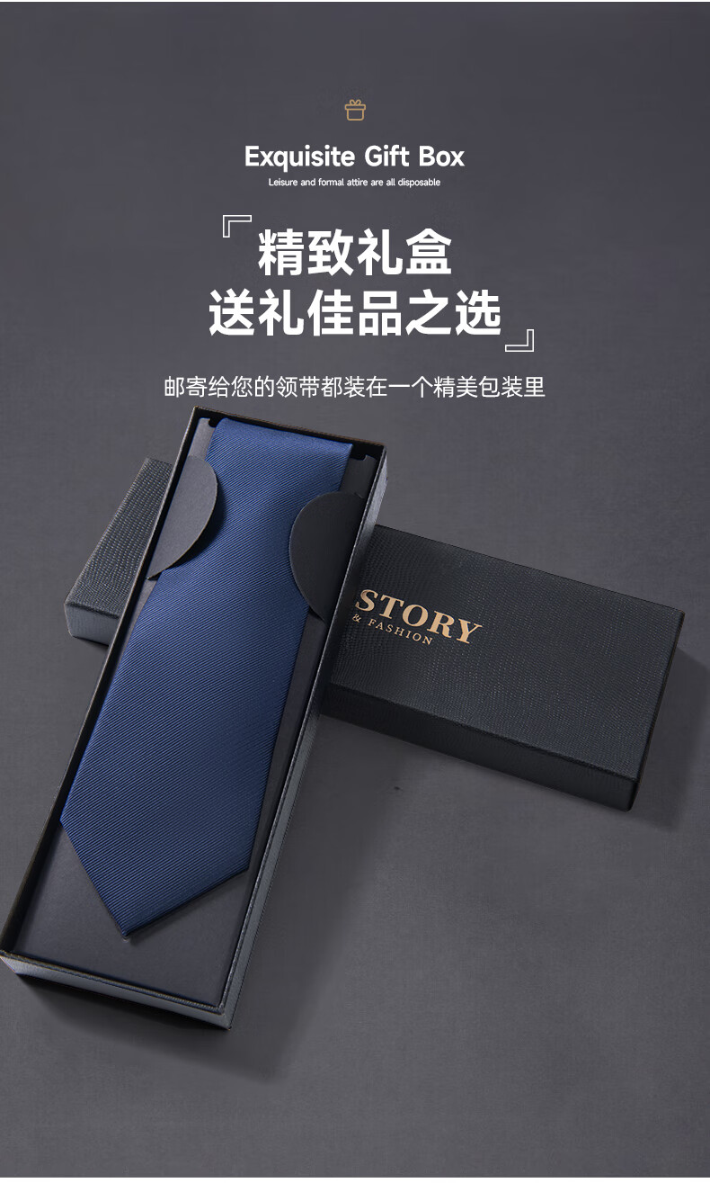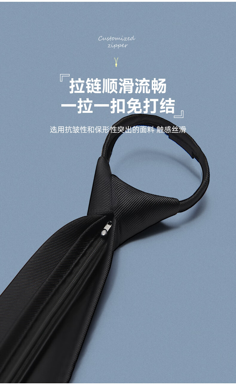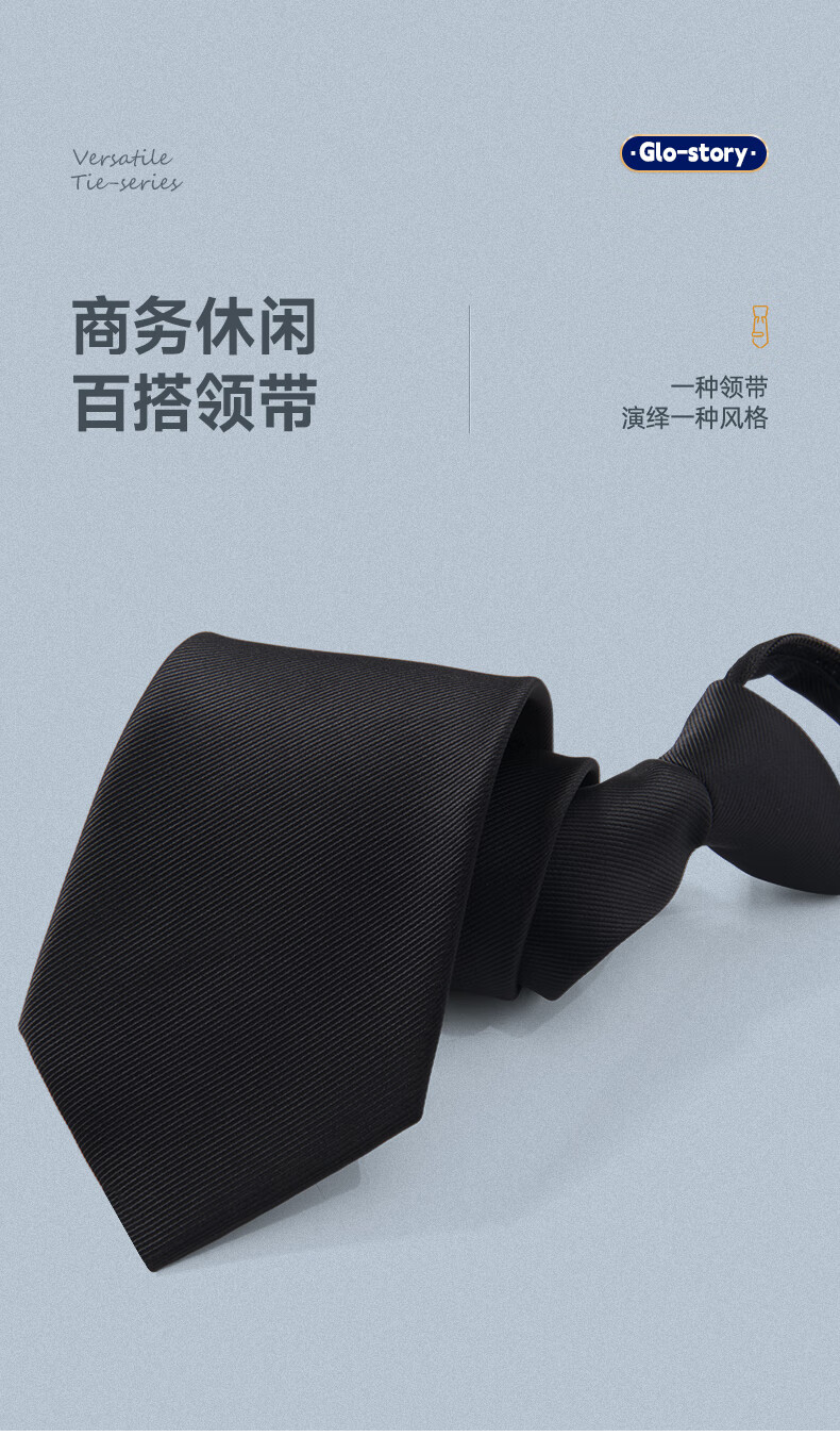 GLO-STORY拉链领带 父亲节礼物8cm男士商务正装潮流领带礼盒装黑色