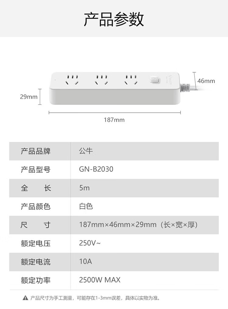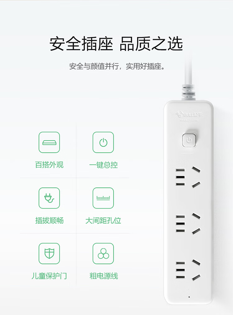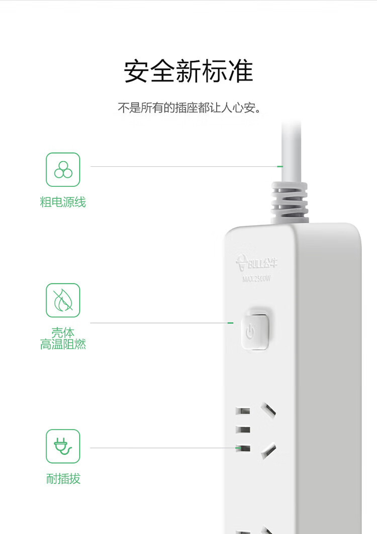 BULL socket plug board/socket strip/socket strip/wiring board/pull line board 3C certification 3-position master switch total length 5 meters GN-B2030