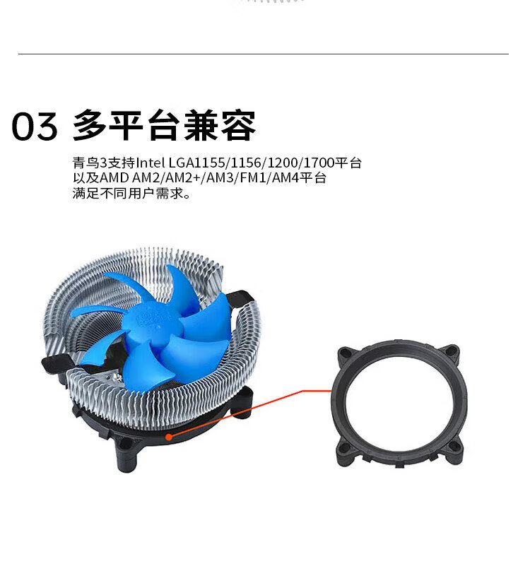 超频3(PCCOOLER)青鸟3 CPU散热器(多平台/9CM风扇/ITX散热器/下吹式/附带硅脂)