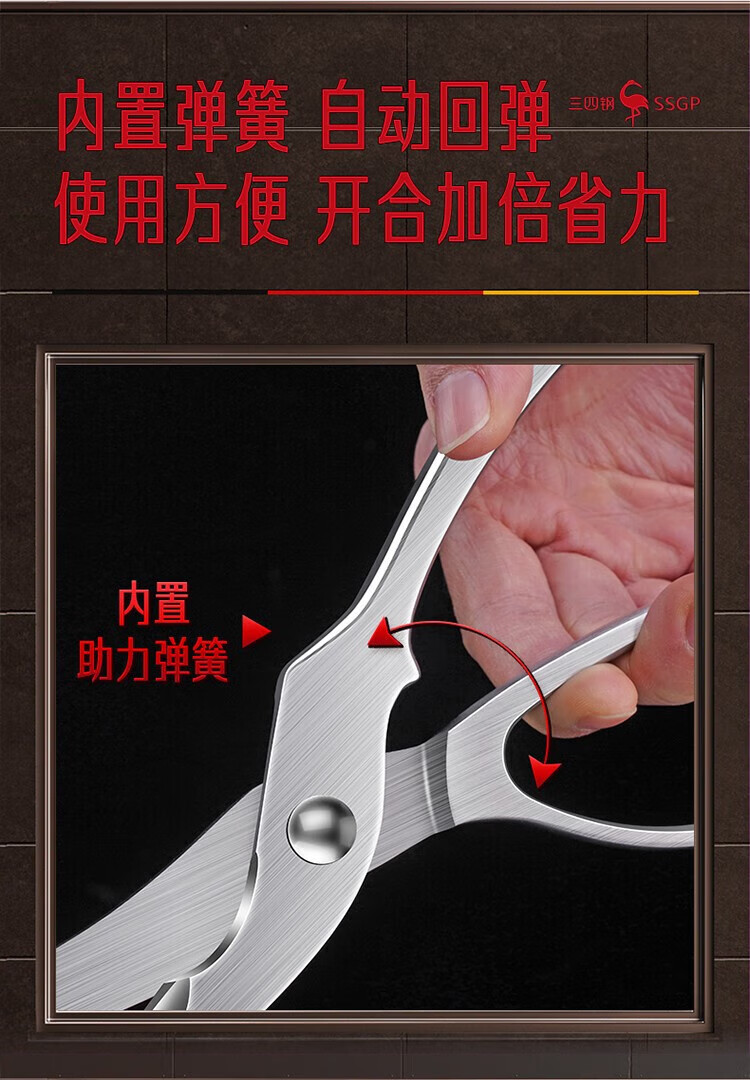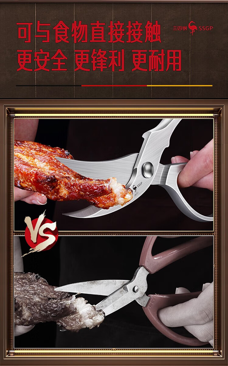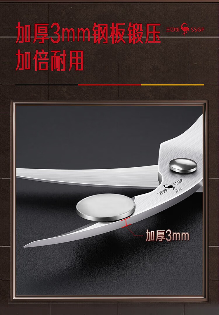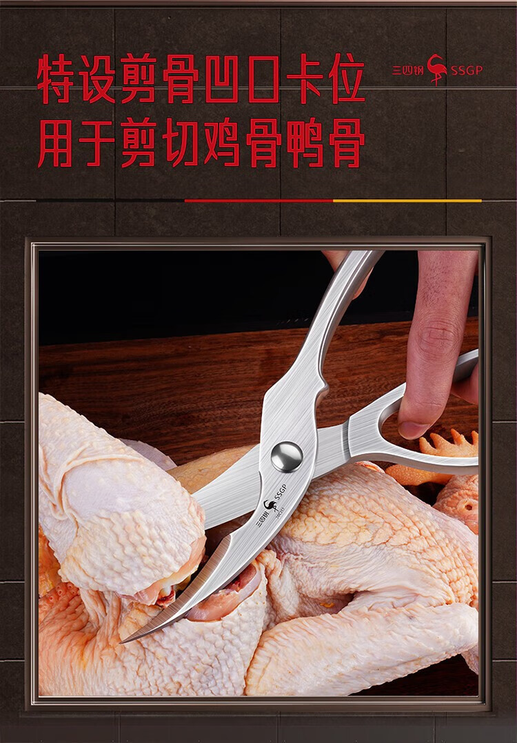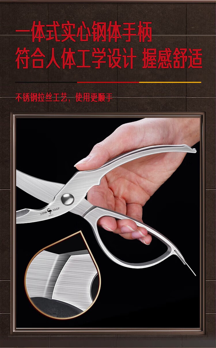 Sansi Steel Kitchen Scissors Powerful Chicken Bone Scissors Large Scissors Special Stainless Steel Multifunctional Household Fish Killing Scissors 26781