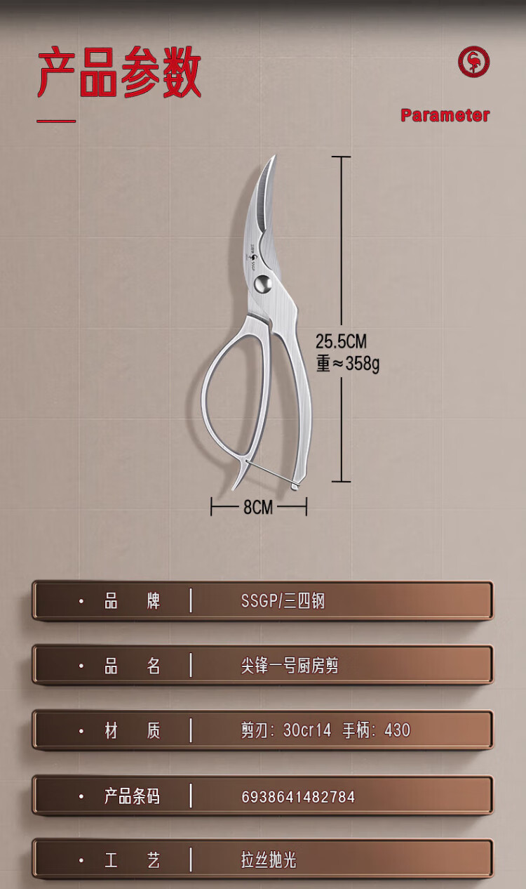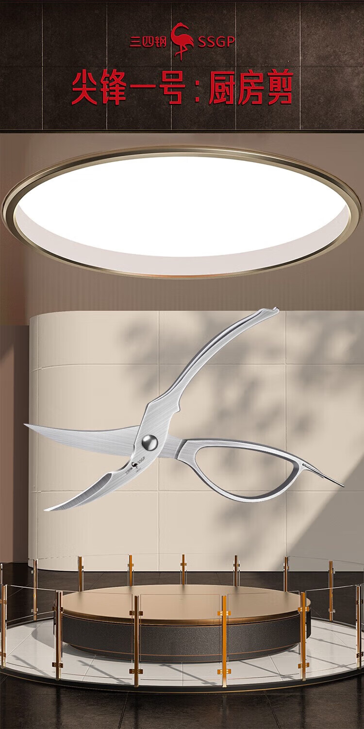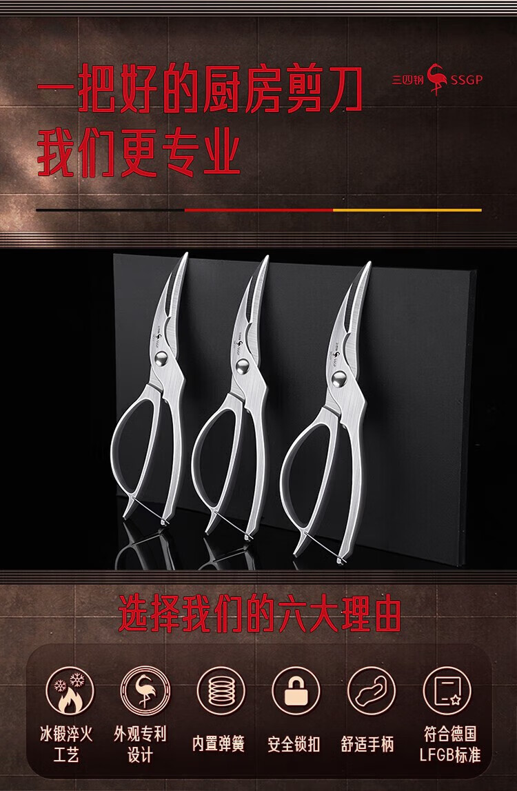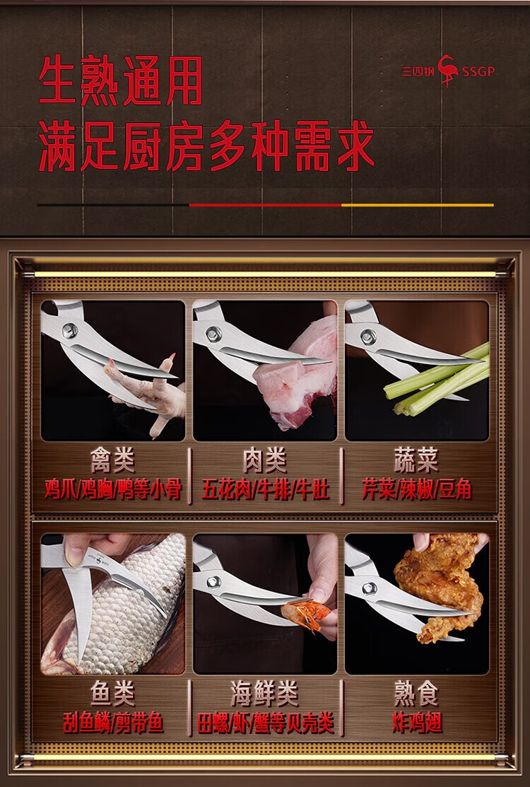 Sansi Steel Kitchen Scissors Powerful Chicken Bone Scissors Large Scissors Special Stainless Steel Multifunctional Household Fish Killing Scissors 26781