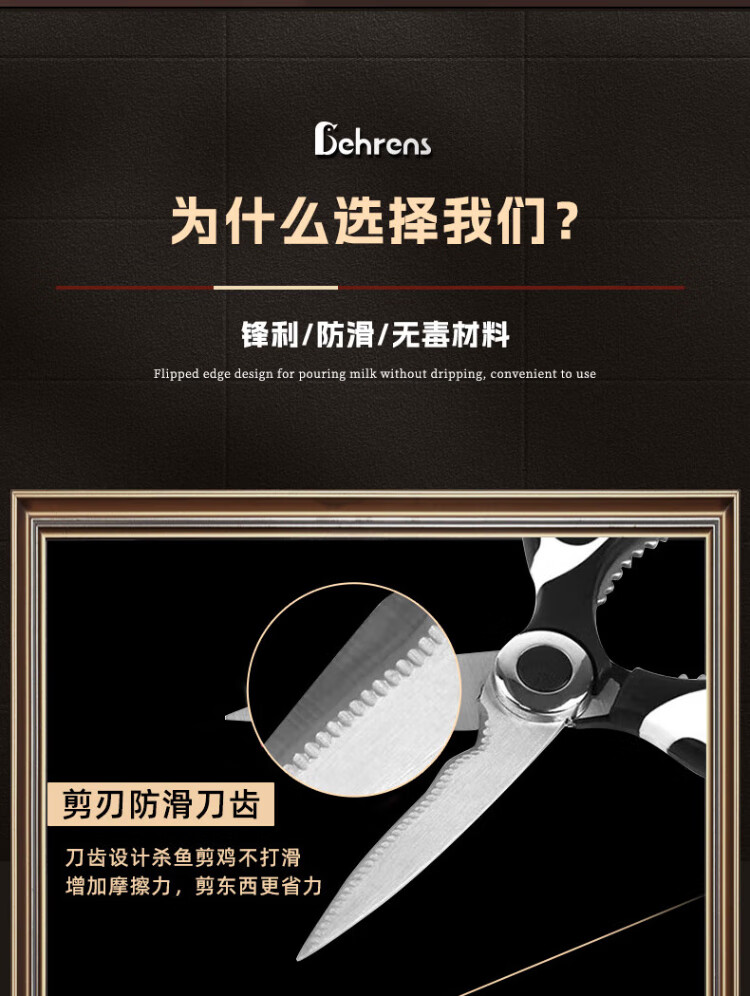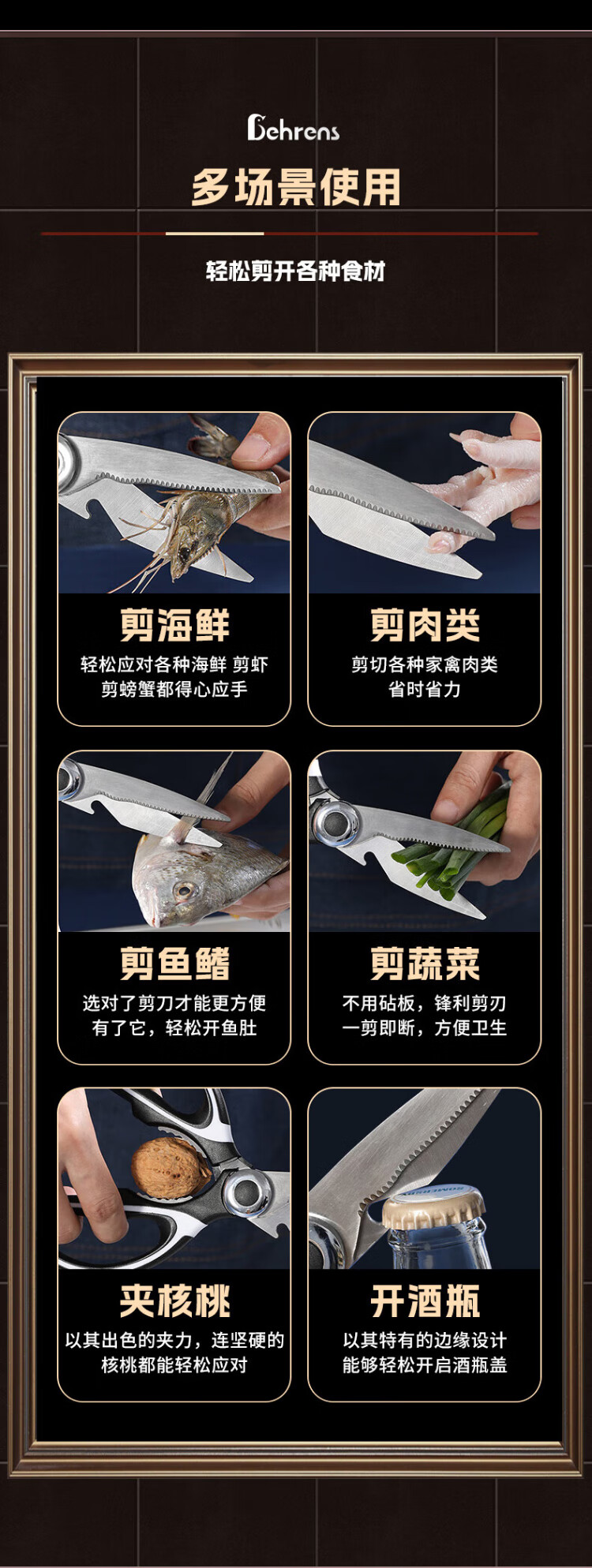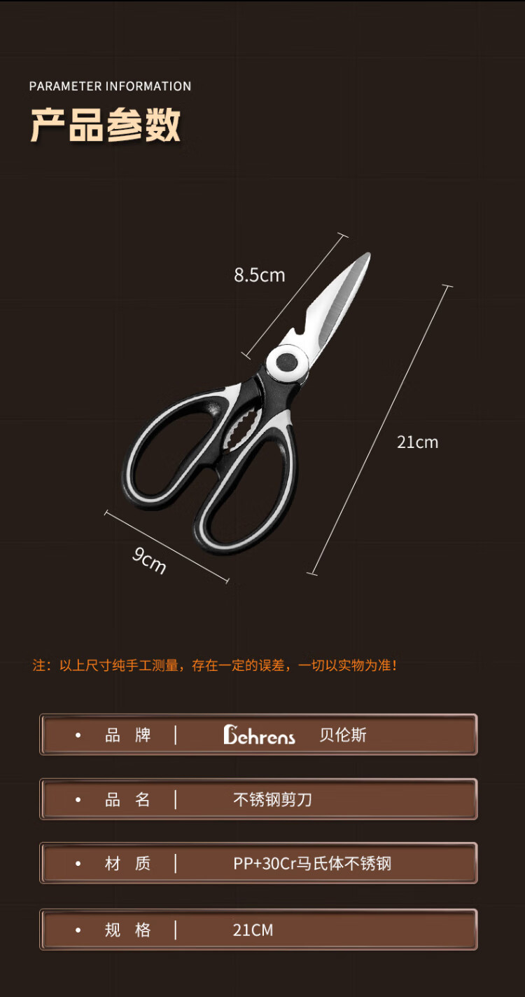贝伦斯厨房剪刀多功能不锈钢家用食品级剪子烤肉剪骨剪刀辅食厨房剪子