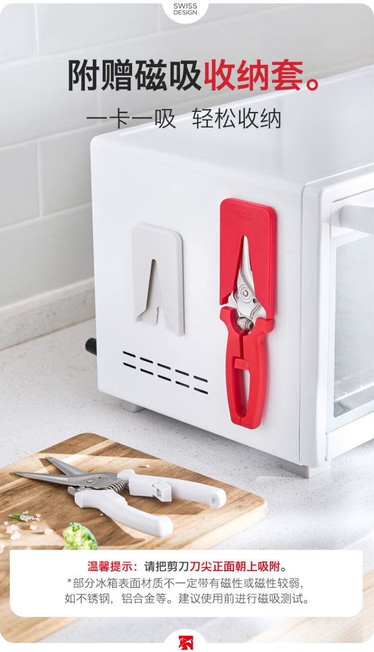 瑞士力康厨房剪刀专用多功能强力鸡骨剪家用不锈钢食物剪刀磁吸