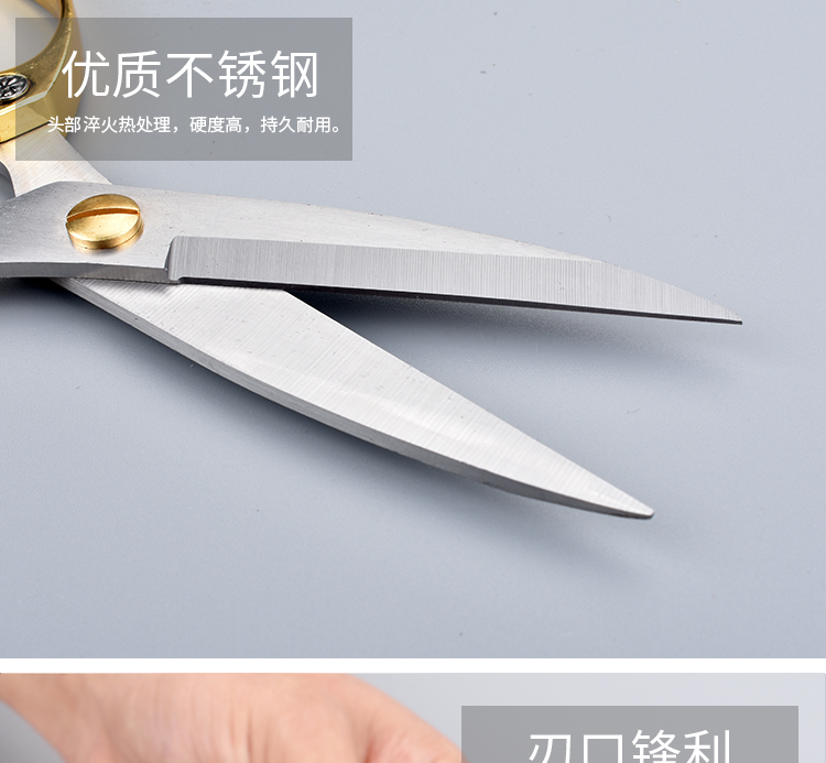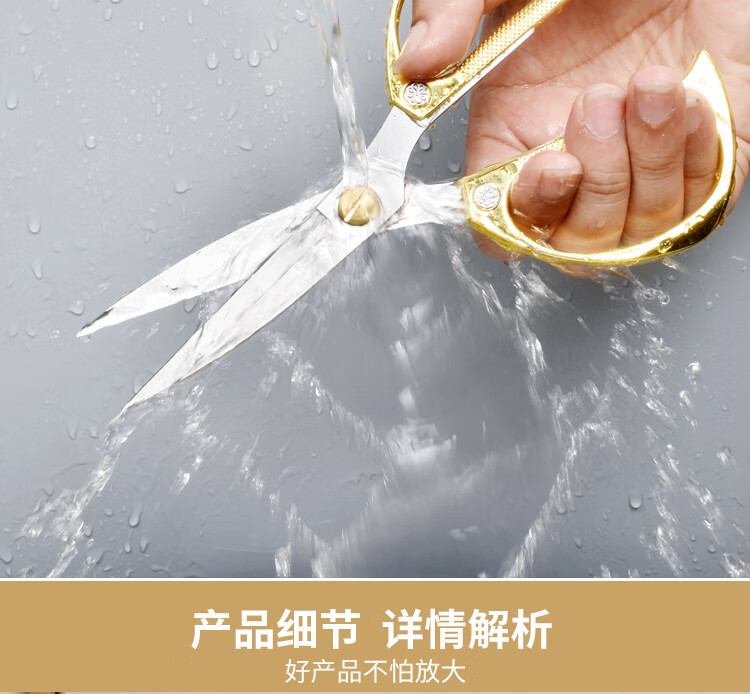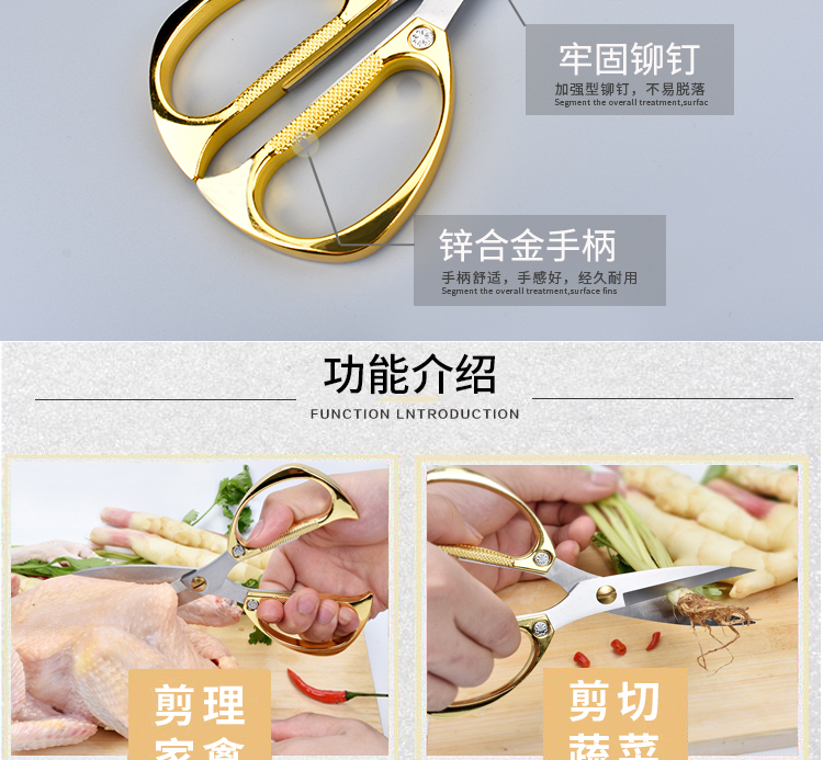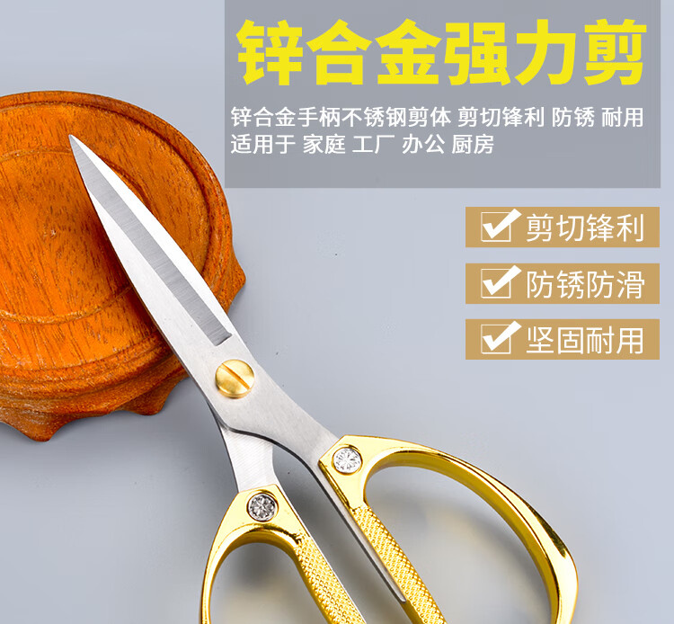 亨禄厨房剪刀多功能不锈钢合金剪家用剪刀强力鸡骨剪专用彩缝纫剪纸剪 K26小柄款金色厨房剪