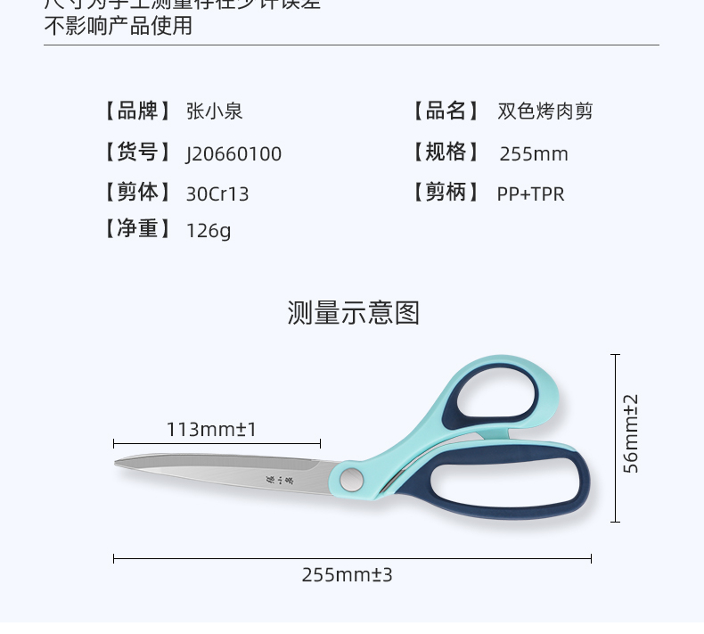 Zhang Xiaoquan barbecue scissors kitchen household extended stainless steel scissors steak barbecue chicken steak restaurant special kitchen scissors J20660100 two-color barbecue scissors